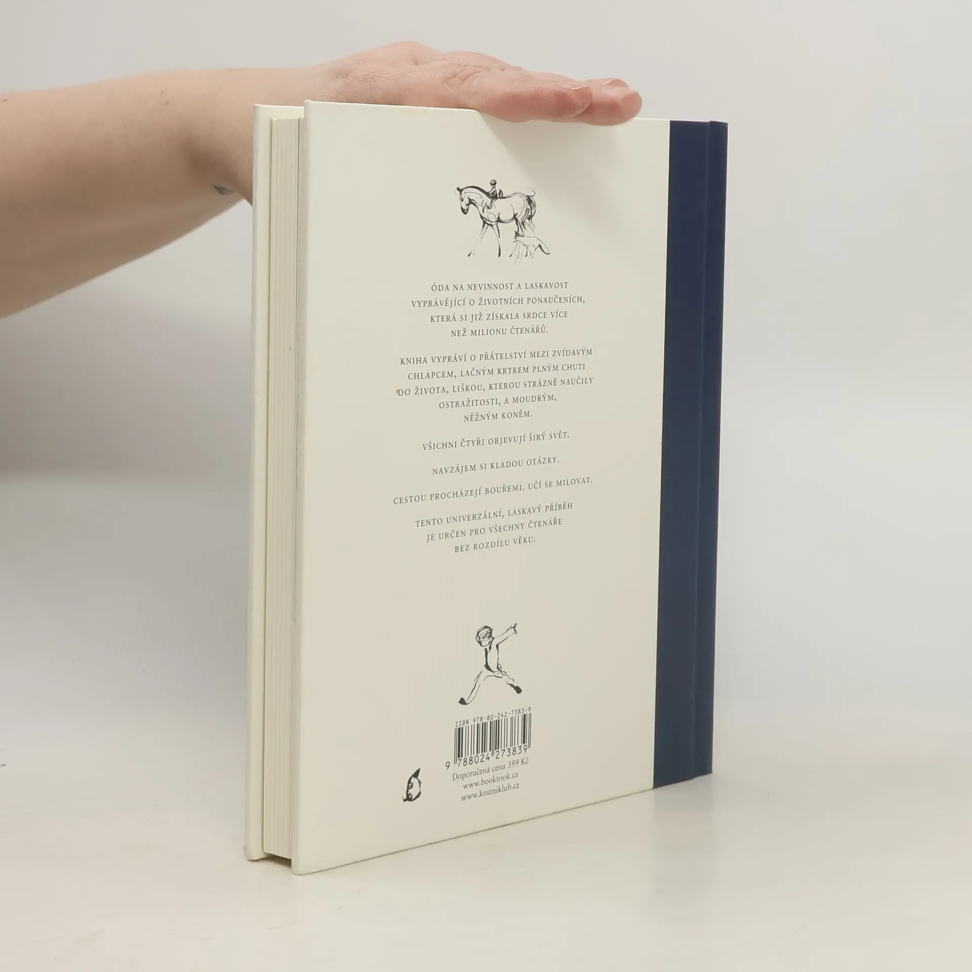 Tento univerzální, laskavý příběh je určen pro všechny bez rozdílu věku. Vypráví o přátelství mezi zvídavým chlapcem, lačným krtkem plným chuti do života, liškou, kterou strázně naučily ostražitosti, a moudrým, něžným koněm. Všichni čtyři objevují širý svět. Navzájem si kladou otázky. Cestou procházejí bouřemi. Učí se milovat. Óda na nevinnost a laskavost vyprávějící o životních ponaučeních, která si již získala srdce více než milionu čtenářů.