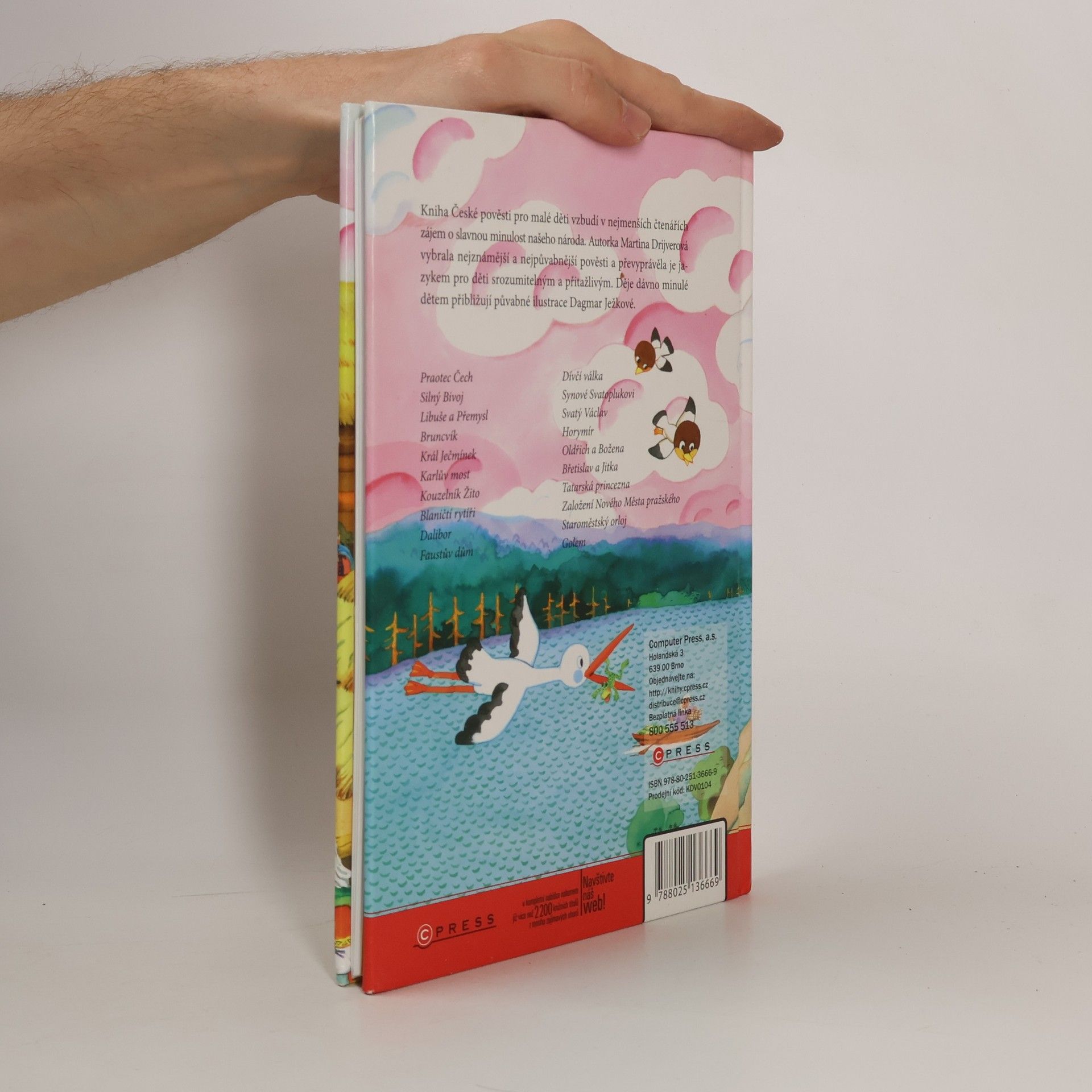 Zkrácené verze nejznámějších českých pověstí přepsaných do jazyka srozumitelného dětem raného školního věku (Praotec Čech, Silný Bivoj, Libuše a Přemysl, Dívčí válka, Oldřich a Božena, Břetislav a Jitka, Blaničtí rytíři, Karlův most, Král Žito, Bruncvík, Faustův dům, Dalibor, Synové Svatoplukovi, Golem, Staroměstský orloj, Horymír, Král Karel IV., Tatarská princezna, Král Ječmínek).