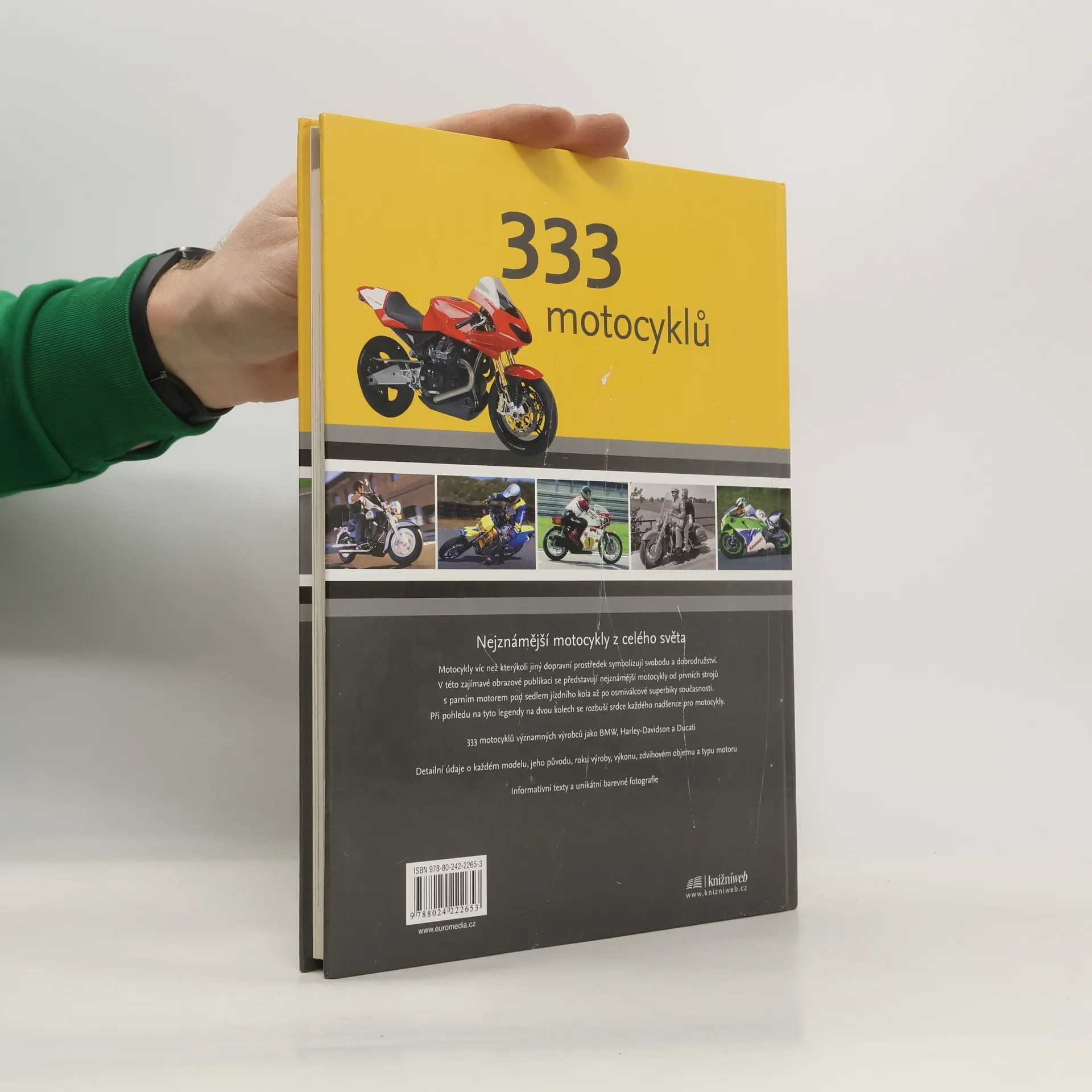 Jedinečné fotografie doprovázené podrobnými informativními texty představují to nejzajímavější z dějin motocyklů, a to od parního stroje pod sedlem řidiče po dnešní superbiky. Publikace zachycuje nejslavnější výrobce i modely, ale i polozapomenuté stroje zaniklých značek. Vhodný dárek pro každého milovníka motocyklů.