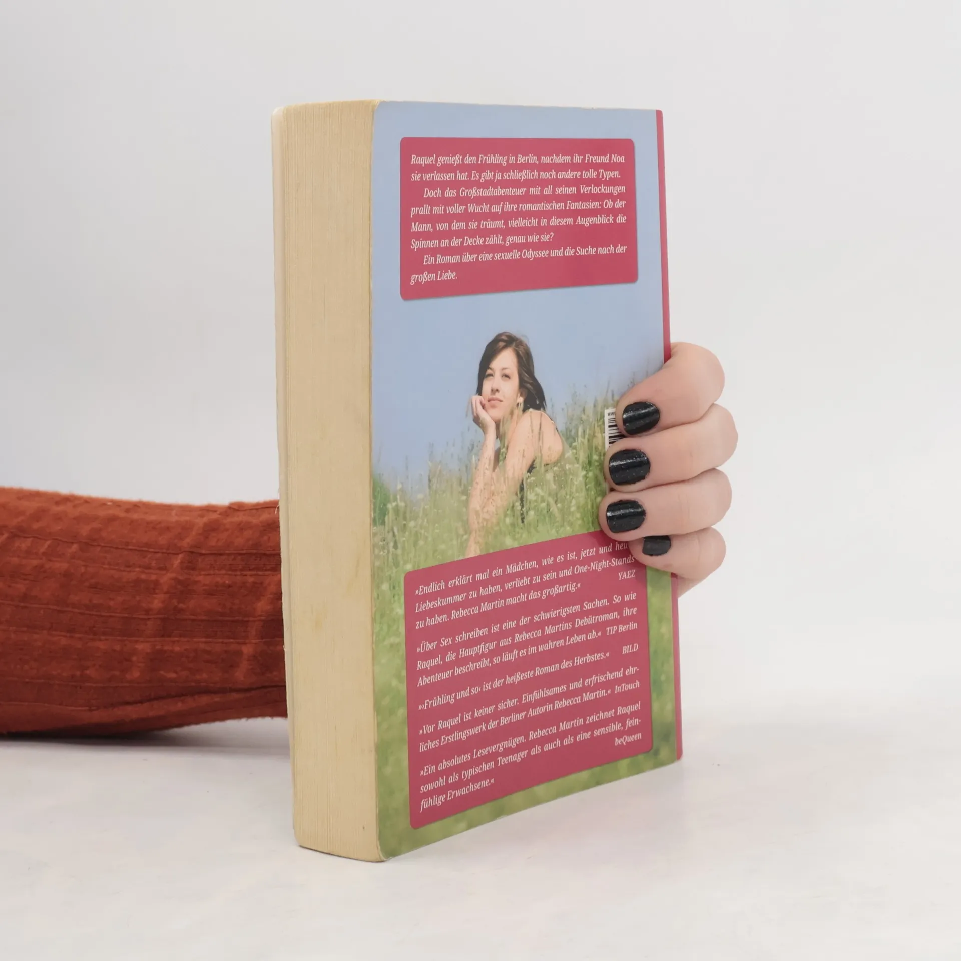 Eigentlich führt Raquel ein recht durchschnittliches Mädchenleben. An ihrem zwölften Geburtstag wird sie zum ersten Mal richtig geküsst. Mit dreizehn hat sie ihren ersten Freund. Mit vierzehn lernt sie den drei Jahre älteren Noa kennen. Doch dann trennen sich die beiden nach zweieinhalb Jahren plötzlich und für Raquel beginnt ein Reigen der sexuellen Abenteuer. Sie verführt den besten Freund ihres Ex und den Freund einer Freundin. In einem Club schleppt sie einen kolumbianischen Musiker ab, der sie zu Tode langweilt. Im Urlaub schläft sie mit einem griechischen Barbesitzer. Sie verliebt sich in Julian, ihren Nachbarn, doch verbirgt erst einmal ihre Gefühle vor ihm. Sie lässt sich von einem 28-Jährigen nach Strich und Faden ausnutzen. Sie sucht sich Männer, von denen sie weiß, dass diese sie nicht lieben werden … Doch insgeheim denkt Raquel über den Mann ihrer Träume nach: Ob er gerade die Spinnen an der Decke zählt oder wie sie auf dem Balkon sitzt, eine Zigarette nach der anderen raucht und mit überdimensionalen Kopfhörern sentimentale Indie-Musik hört? Ein einfühlsamer und erfrischend offener Erstlingsroman einer jungen Berliner Autorin.