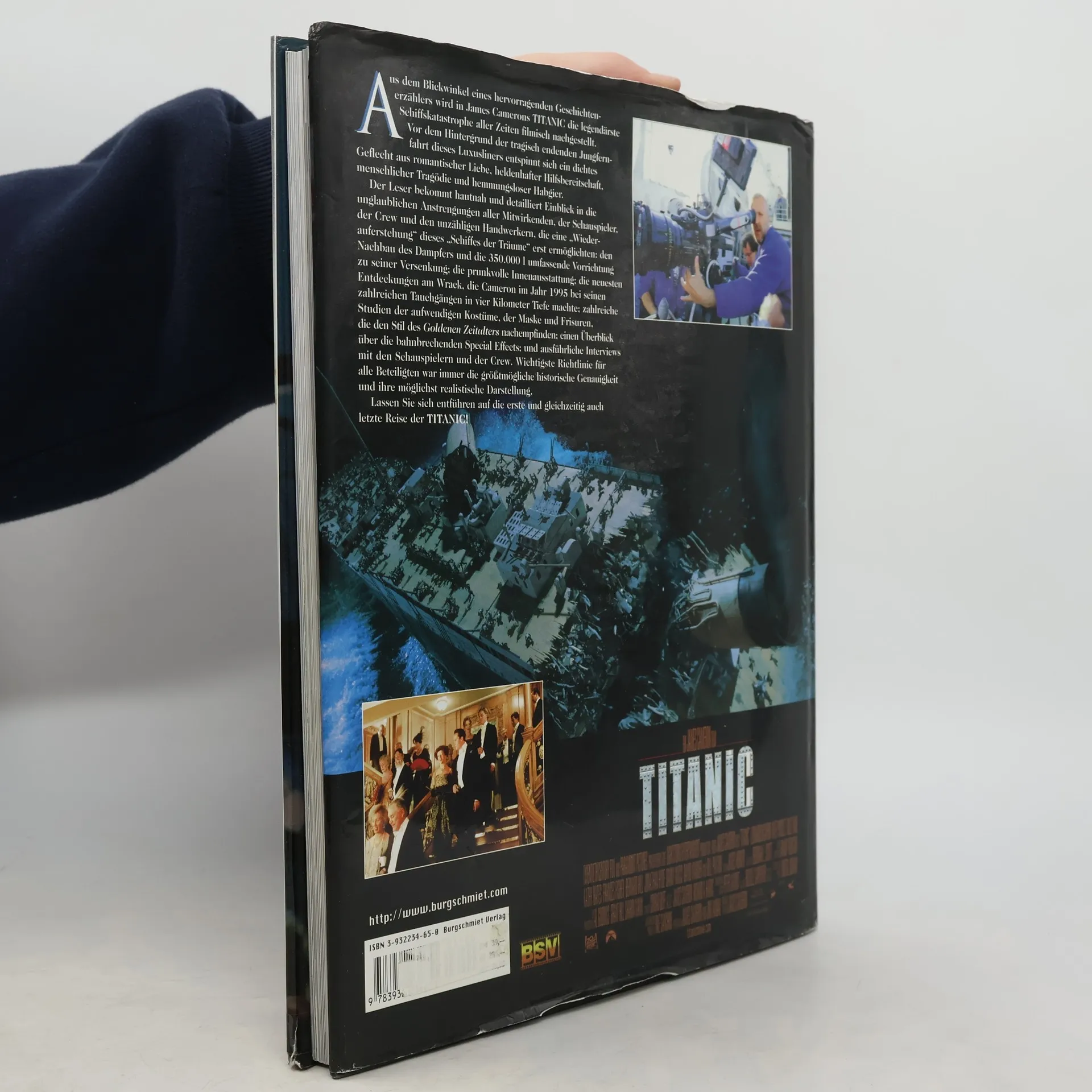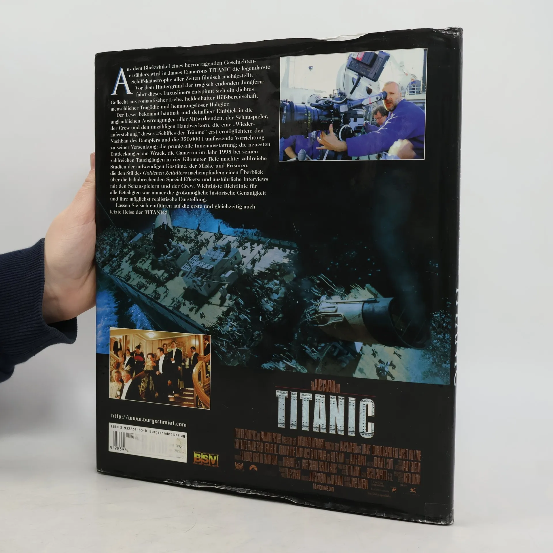 Sehr lebendig wirkt der farbige Bildband zu Camerons Megafilmproduktion, bei der sich eine leidenschaftliche Liebe voller Heldentum und Tragik auf dem Hintergrund der größten Schiffskatastrophe des Jahrhunderts, die sich jemals ereignet hat, entspinnt. Das nachgebaute Schiffsmodell und der Film haben wohl mehr gekostet, als die Original-Titanic. Cameron, der bekannt dafür ist, genaueste Recherchen zu betreiben und in seinen Darstellungen möglichst nah an der Realität zu bleiben, ließ sich natürlich nicht davon abhalten, mehrere Male zu dem gesunkenen Schiffswrack hinabzutauchen. Das Buch erzählt alles über die Entstehungsgeschichte des großen Kinoerfolges, vom Bau des Titanic-Modells über die aufwendige Gestaltung der einzelnen Szenen bis zu den Anstrengungen der Schauspieler, die diese bei den Dreharbeiten auf sich nehmen mußten. Zu Camerons Film und Buch gibt es jetzt noch das Posterbook , das Storybook und einen Kalender.
