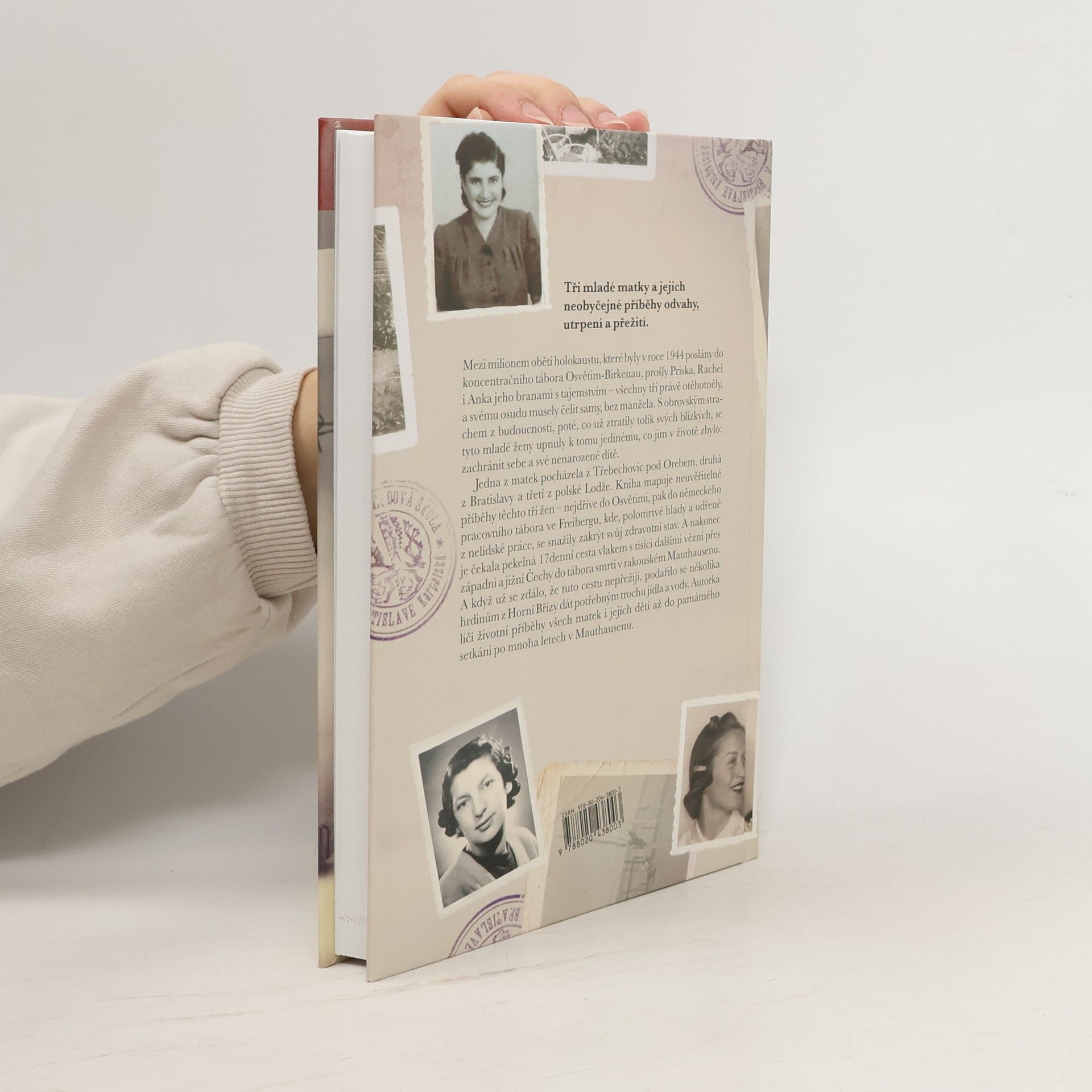 Tři mladé matky a jejich neobyčejné příběhy odvahy, utrpení a přežití Mezi milionem obětí holokaustu, které byly v roce 1944 poslány do koncentračního tábora Osvětim-Birkenau, prošly Priska, Rachel i Anka jeho branami s tajemstvím – všechny tři právě otěhotněly, a svému osudu musely čelit samy, bez manžela. S obrovským strachem z budoucnosti, poté, co už ztratily tolik svých blízkých, se tyto mladé ženy upnuly k tomu jedinému, co jim v životě zbylo: zachránit sebe a své nenarozené dítě. Jedna z matek pocházela z Třebechovic pod Orebem, druhá z Bratislavy a třetí z polské Lodže. Kniha mapuje neuvěřitelné příběhy těchto tří žen – nejdříve do Osvětimi, pak do německého pracovního tábora, kde, polomrtvé hlady a udřené z nelidské práce, se snažily zakrýt svůj zdravotní stav. A nakonec je čekala pekelná 17denní cesta vlakem s tisíci dalšími vězni přes západní a jižní Čechy do tábora smrti v rakouském Mauthausenu. A když už se zdálo, že tuto cestu nepřežijí, podařilo se několika hrdinům z Horní Břízy dát potřebným trochu jídla a vody.