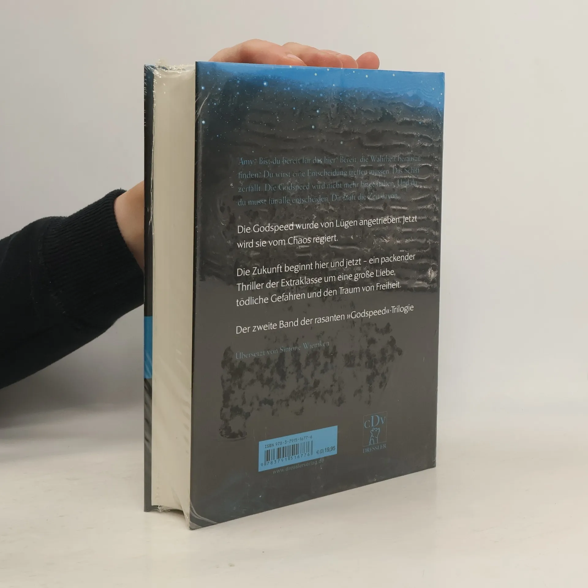 Spannung und Gefühl. Nicht von dieser Welt! Die Zukunft für Amy und Junior liegt in weiter Ferne. Während ihre Gefühle füreinander stärker werden, wird die Lage auf dem Raumschiff, der „Godspeed“, immer bedrohlicher. Ohne die kontrollierende Droge Phydus, das heißt ihrem freien Willen unterworfen, sind die Menschen an Bord überfordert. Die Stimmung droht zu kippen. Auch die Technik entpuppt sich als trügerisch: Wird nur eine Gruppe Auserwählter das Ziel, die Zentauri-Erde, erreichen? Der Druck auf Amy und Junior wächst: Wer ist Freund, wer Feind? Und wohin führt sie ihre Liebe? Der zweite Band der spektakulären Godspeed-Trilogie ist ein Genre-Mix aus Dystopie, Sci-Fi-Thriller und Romantik. Auch als