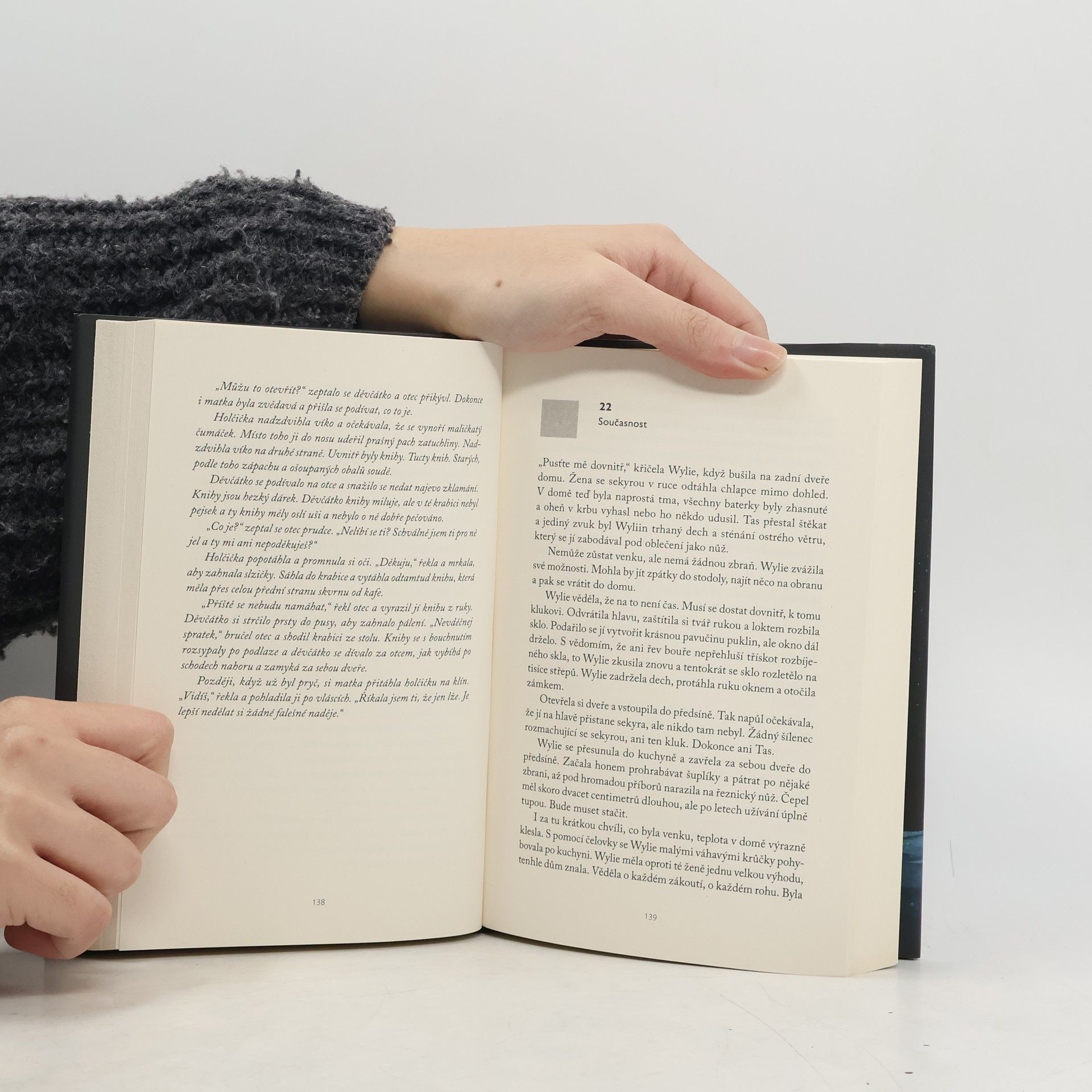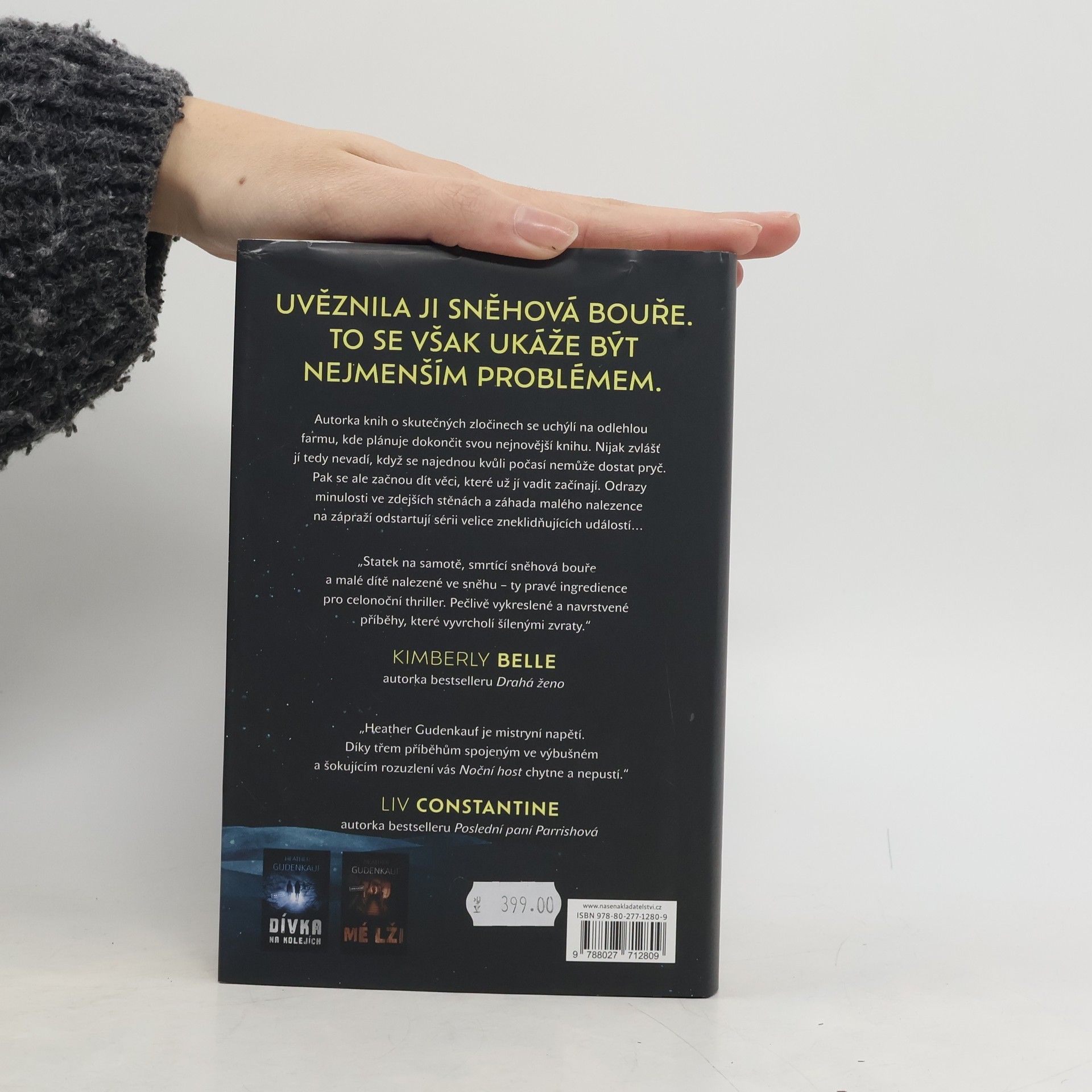 Uprostřed smrtící sněhové bouře za ženou přijde nečekaná návštěva. Autorka knih o skutečných zločinech Wylie Larková nevnímá jako velký problém, když ji sníh uvězní na odlehlé farmě, kam se uchýlila, aby dopsala svou zatím poslední knihu. Útulné teplo krbu, naprosté ticho. Bylo by to dokonalé, nebýt skutečnosti, že právě v tomto domě před dvěma desetiletími chladnokrevně zavraždili tři lidi a unesli odsud dítě. Jak se bouře přiostřuje, Wylie se ocitne uvězněná v domě, pronásledovaná tajemstvími zakletými do zdí domu i tajemstvími své vlastní minulosti. A pak venku na sněhu těsně přede dveřmi objeví malé dítě. Poté, co je přinese dovnitř do tepla a bezpečí, začne pátrat po odpovědích. Ale velice brzy je jasné, že dům není tak izolovaný, jak se původně zdálo, a někdo je ochotný udělat cokoli, aby je našel