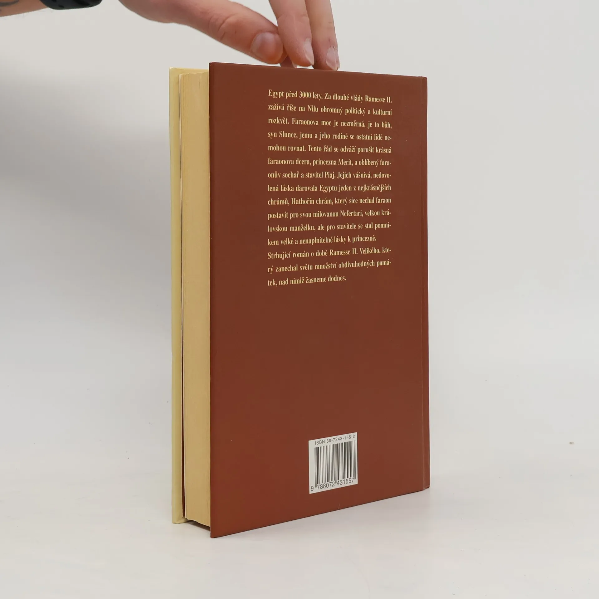 Za vlády Ramesse II. říše vzkvétá, na vzestupu je zejména stavitelství. V něm vyniká mladý a talentovaný sochař a pozdější stavitel Piaj, syn otroka a faraonův oblíbenec. Mezi ním a mladičkou vladařovou dcerou Merit vzniká postupně obapolná sympatie, která přeroste ve vášnivou, ovšem nedovolenou lásku. Vztah Merit a Piaje se vine dějem jako červená nit až do nevyhnutelného tragického konce. Souběžně je vylíčen život Ramesse II. a jeho manželek, dalším motivem je osud trestance Merua, toužícího po pomstě. Autor nám v barvitých obrazech předvádí přepych královského paláce, dílny balzamovačů i stavbu překrásného Hathořina chrámu. Spolu s lidskými city a vášněmi tak velmi sugestivně ukazuje život ve starověkém Egyptě v době jeho největšího rozkvětu.