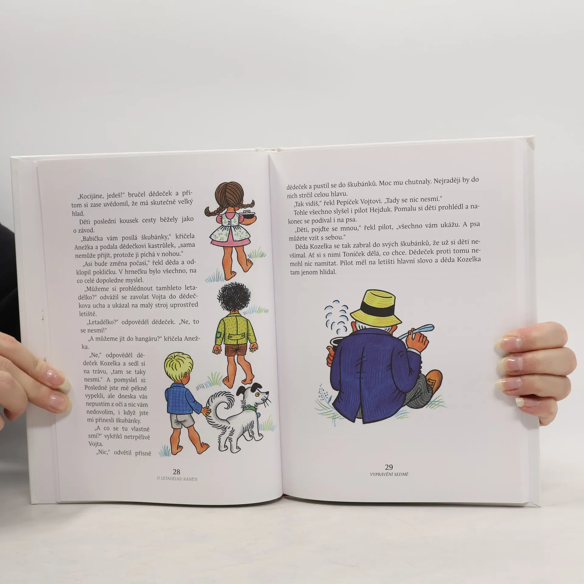 V půvabné knížce prožijete spolu s dětmi Vojtou, Anežkou a Pepíčkem mnoho dobrodružství. Dočtete se v ní, co hlídá dědeček Kozelka na letišti, jak dopadne Vojtův let se psem Kociánkem a jak se jim podaří zachránit život pilota Hejduka.