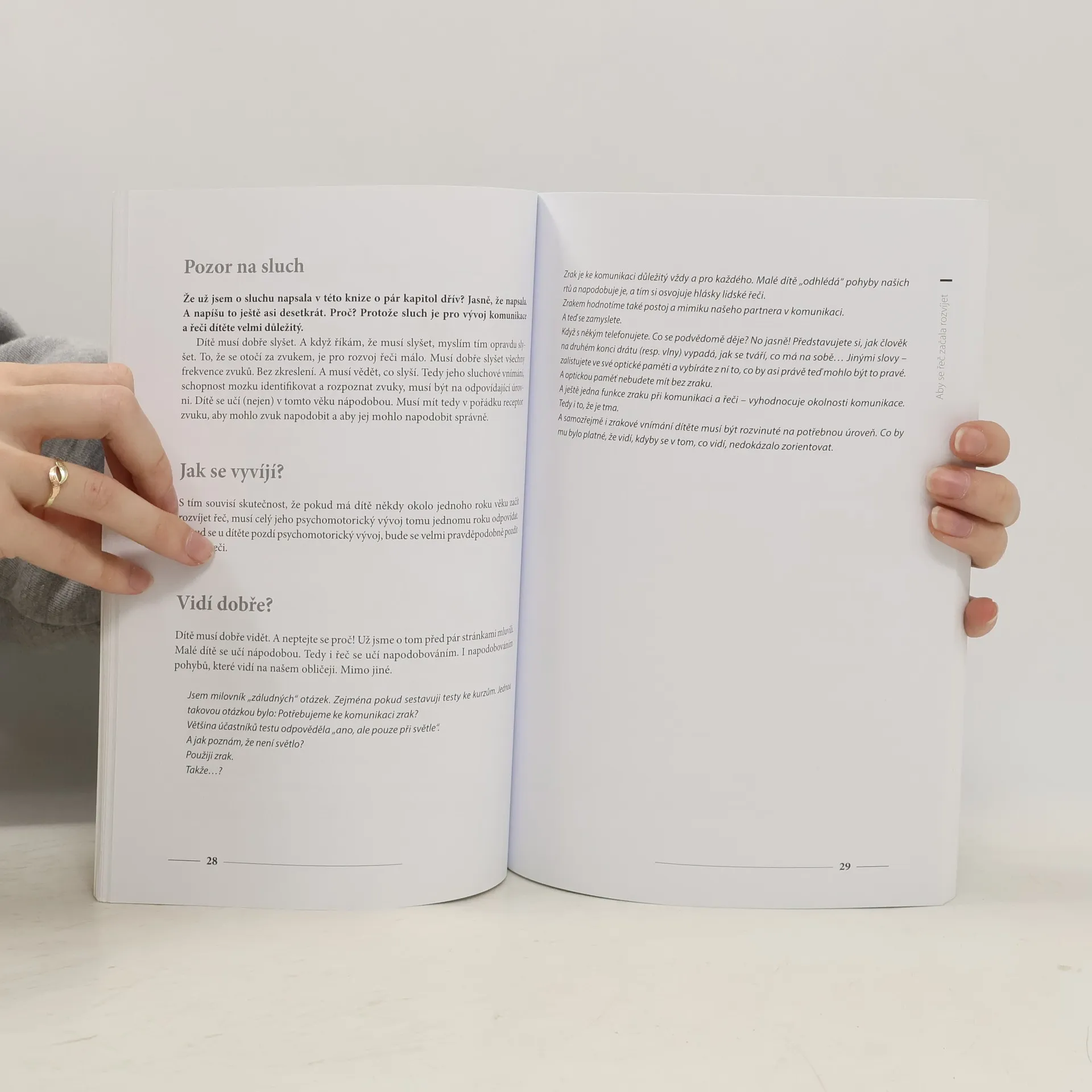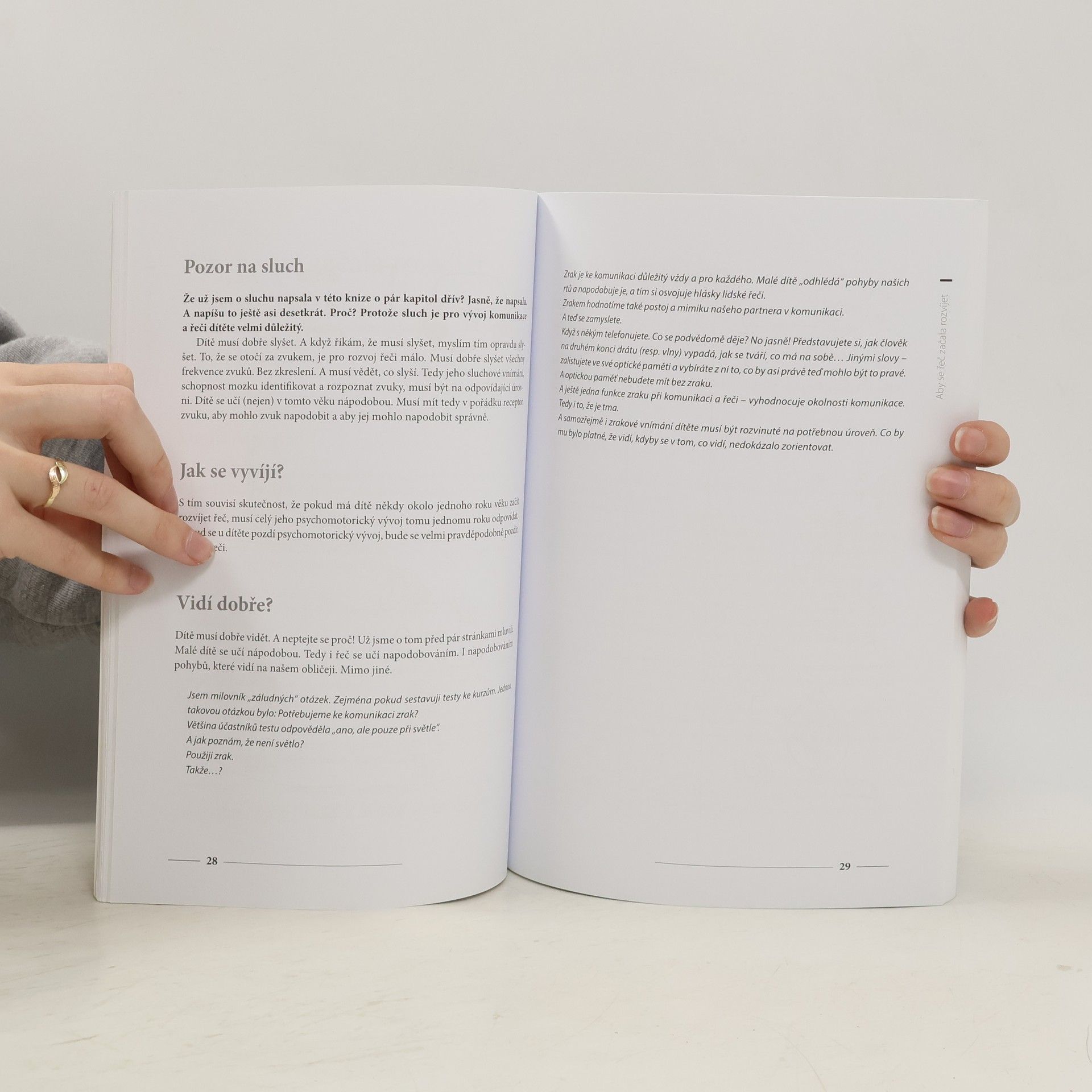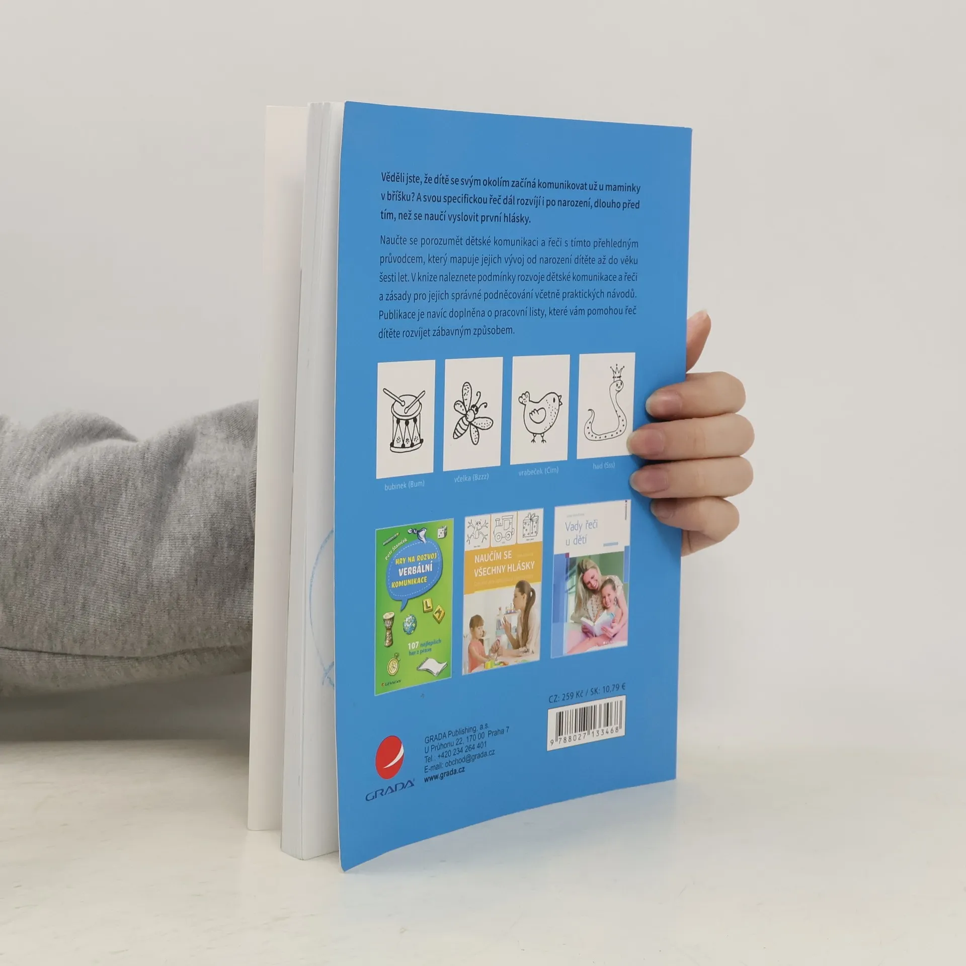 Věděli jste, že dítě se svým okolím začíná komunikovat už u maminky v bříšku? A svou specifickou řeč dál rozvíjí i po narození, dlouho před tím, než se naučí vyslovit první hlásky. Naučte se porozumět dětské komunikaci a řeči s tímto přehledným průvodcem, který mapuje jejich vývoj od narození dítěte až do věku šesti let. V knize naleznete podmínky rozvoje dětské komunikace a řeči a zásady pro jejich správné podněcování včetně praktických návodů. Publikace je navíc doplněna o pracovní listy, které vám pomohou řeč dítěte rozvíjet zábavným způsobem.