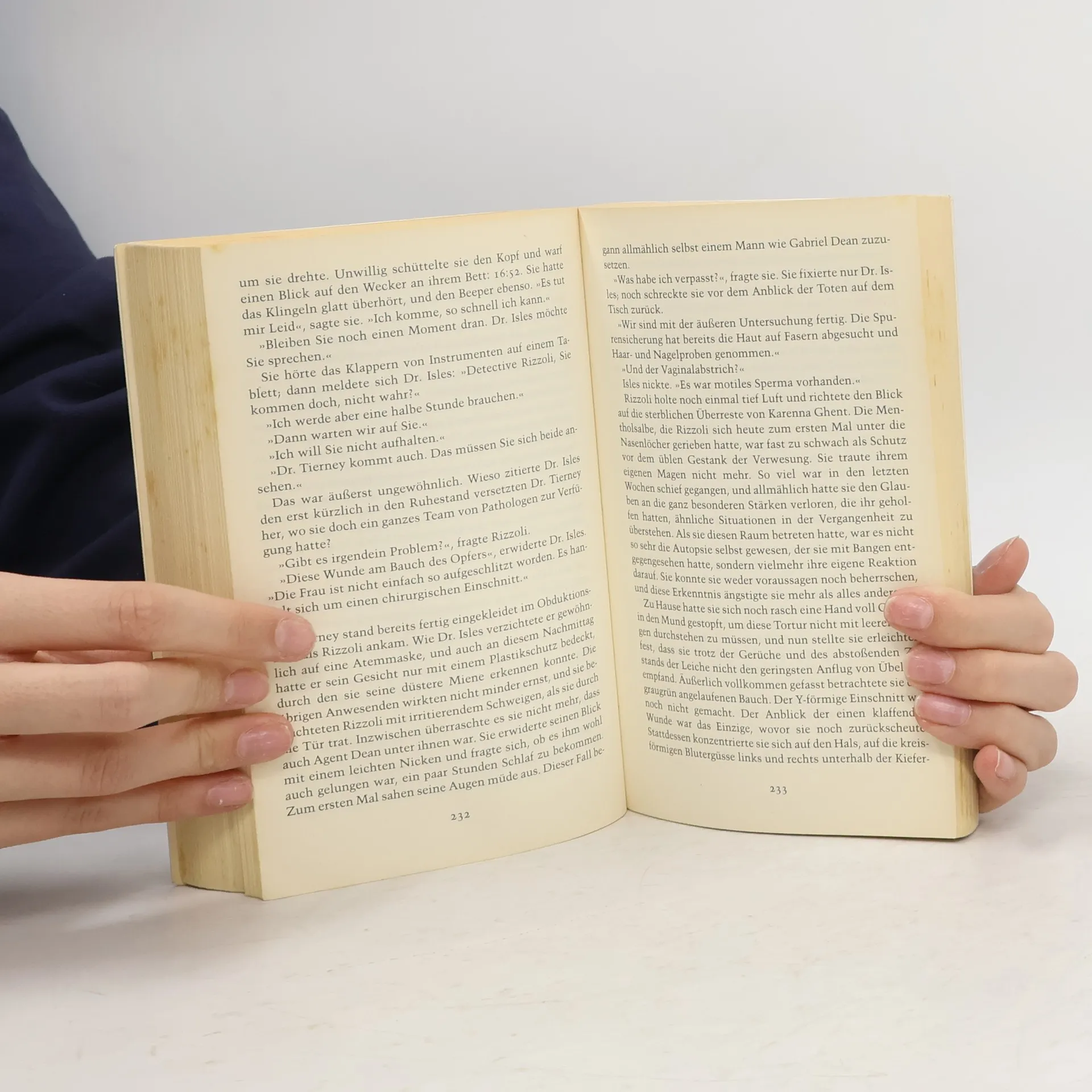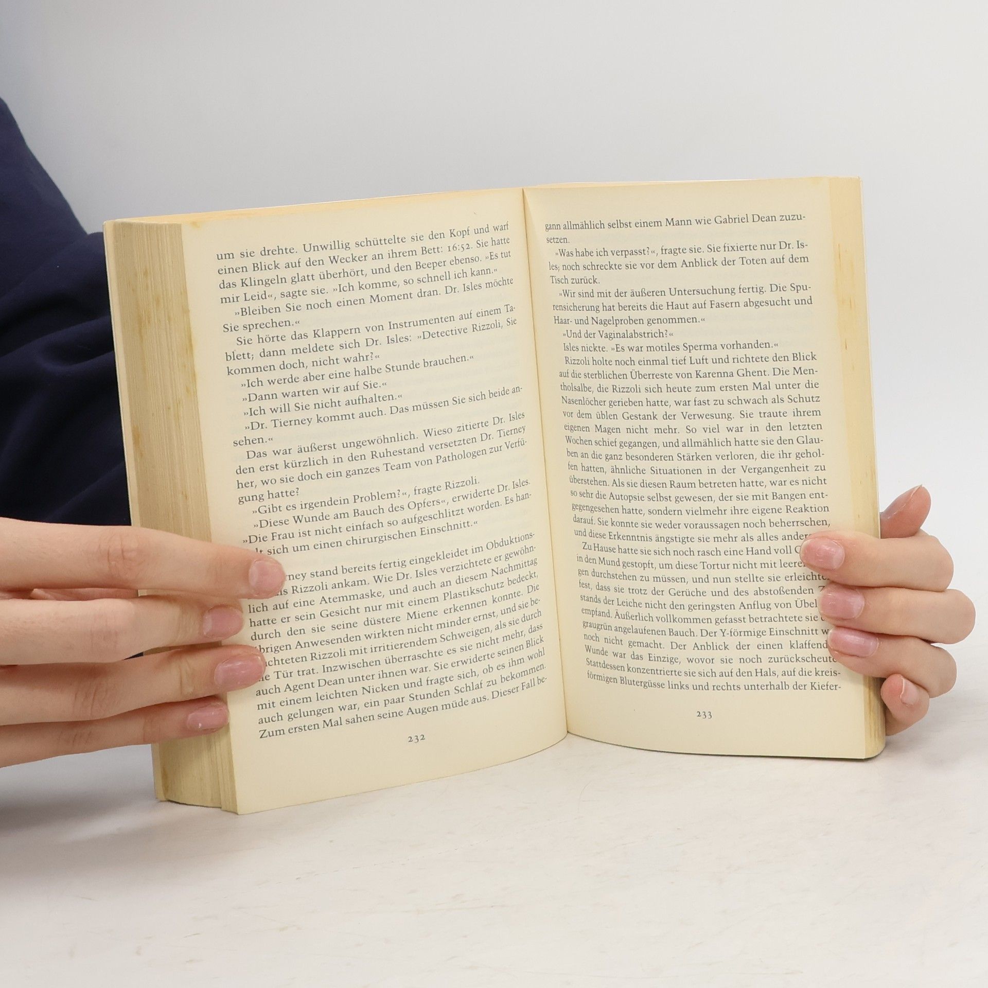 Detective Jane Rizzoli wird in ein Bostoner Villenviertel gerufen, wo sie die Leiche des Arztes Richard Yeager vorfindet. Die Untersuchung ergibt, dass Gail Yeager vor den Augen ihres Mannes vergewaltigt wurde, bevor der Täter ihm die Kehle durchschnitt. Der perverse Mord erinnert Jane an den »Chirurgen«, einen psychopathischen Serienkiller, den sie ein Jahr zuvor verhaftete – nachdem sie ihm beinahe selbst zum Opfer gefallen wäre. Der »Chirurg« sitzt im Gefängnis, aber der neue Mord trägt eindeutig seine Handschrift. Und Jane weiß, dass er noch eine Rechnung mit ihr offen hat … Ein Psychothriller der Extraklasse – brillant konstruiert, glänzend geschrieben – und Nerven zerreißend spannend!