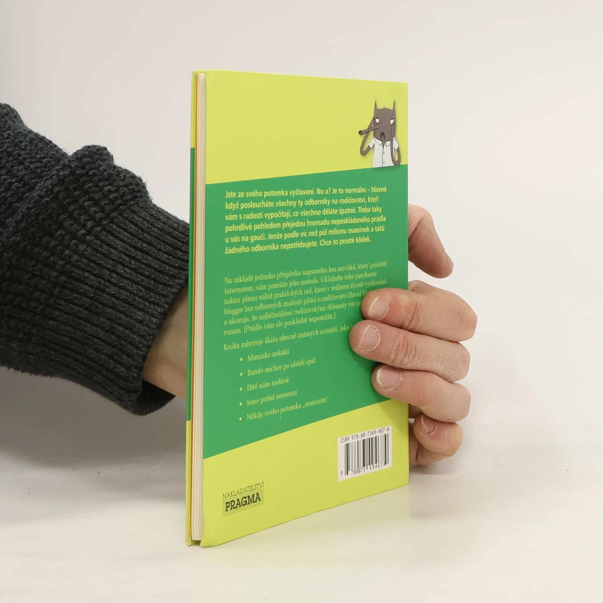 Uklidněte toho parchanta - Jediná kniha, kterou budou rodiče potřebovat. Jste ze svého potomka vyšťaveni. No a? Je to normální - hlavně když posloucháte všechny ty odborníky na rodičovství, kteří vám s radostí vypočítají, co všechno děláte špatně. Třeba taky pohrdlivě pohledem přejedou hromadu neposkládaného prádla u vás na gauči. Jenže podle víc než půl milionu maminek a tátů žádného odborníka nepotřebujete. Chce to prostě klídek. Na základě jednoho příspěvku napsaného bez servítků, který proletěl internetem, vám pomůže jeho metoda. Uklidněte toho parchanta nabízí plnou nálož praktických rad, které v reálném životě vyzkoušel blogger bez odborných znalostí píšící o rodičovství David Vienna, a ukazuje, že nejběžnějšími rodičovskými dilematy vás provede zdravý rozum. ( Prádlo vám ale poskládat nepomůže. ) Kniha zahrnuje škálu obecně známých scénářů, jako jsou: Miminko nekaká Batole nechce po obědě spát Dítě nám nadává Jsme pořád nemocní Někdy svého potomka "nemusím"