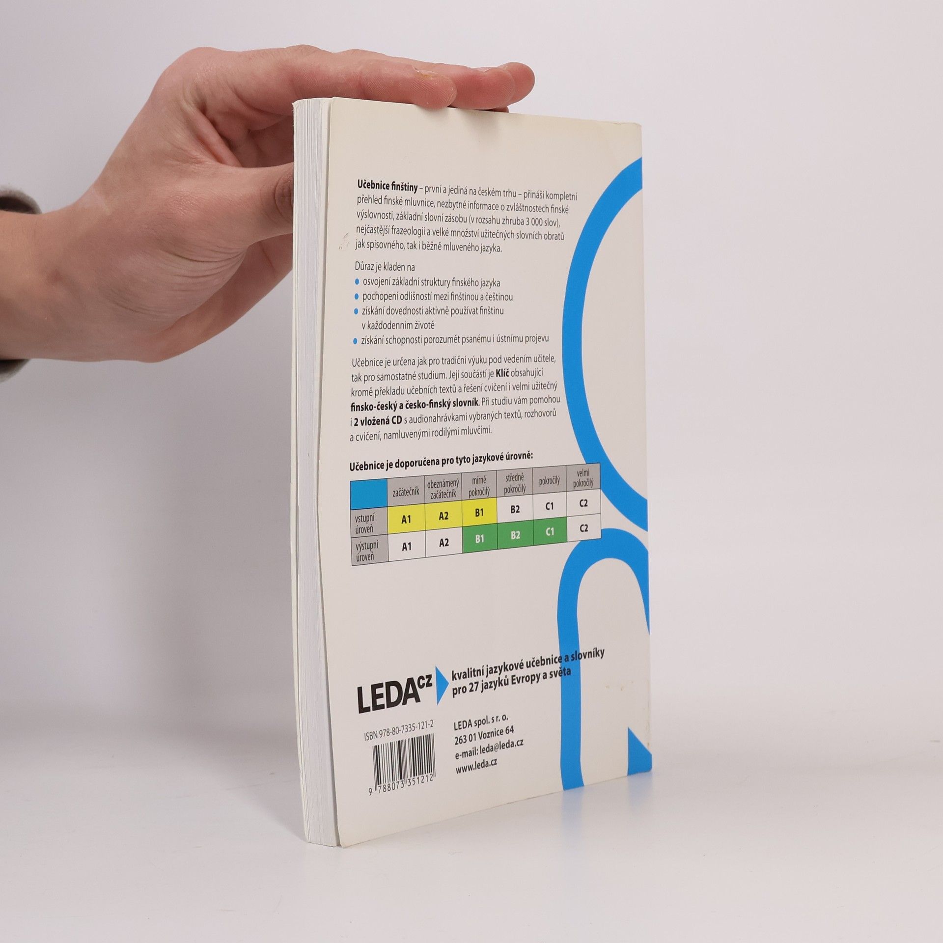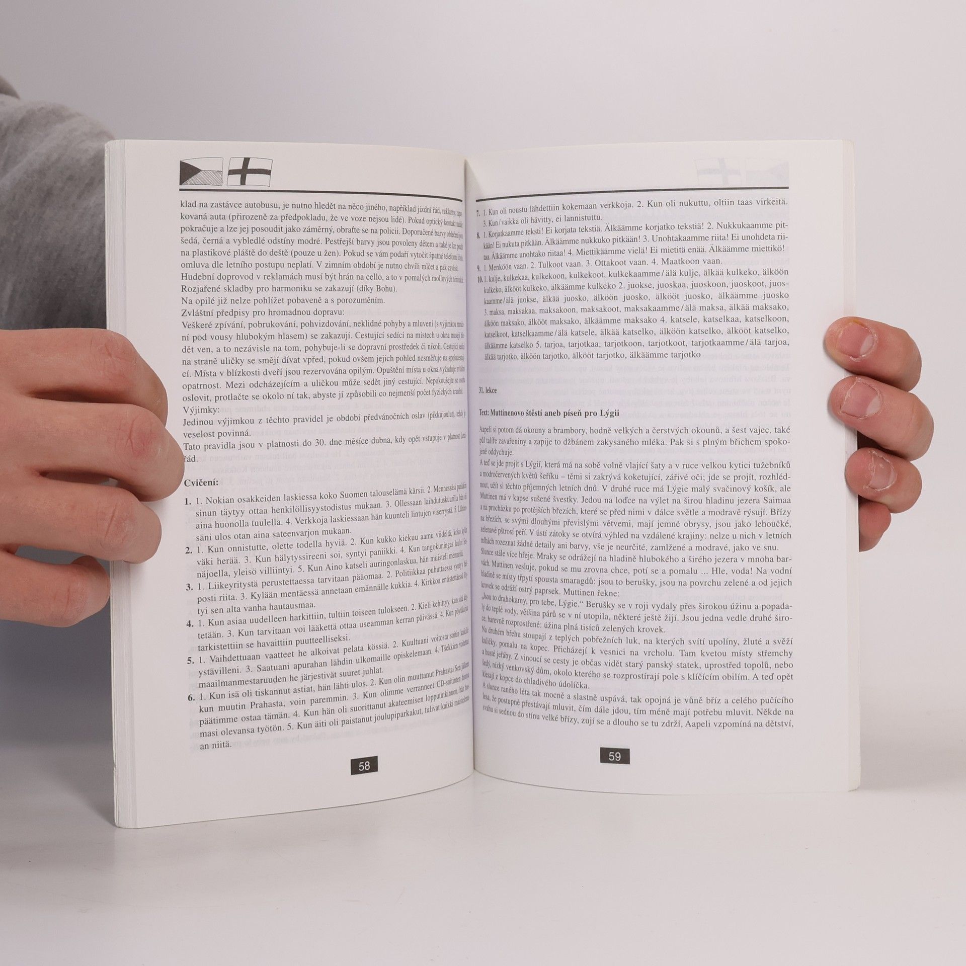První učebnice finského jazyka pro Čechy nabízí v 31 lekcích úplné základy současné finštiny. Je určena především pro tradiční výuku pod vedením učitele, který může dále doplňovat a rozvádět i to, co – ve snaze pojmout do knihy co nejvíce – mohlo být jen naznačeno nebo zmíněno okrajově. Svým uspořádáním je však tato učebnice vhodná i pro samouky. Součástí učebnice jsou praktický klíč, který kromě překladů učebních textů a rozhovorů z jednotlivých lekcí učebnice a kromě řešení ke cvičením obsahuje i velmi užitečný finsko-český slovník obsahující zhruba 3000 hesel a česko-finský slovník o rozsahu zhruba 1000 hesel, a 2 audio CD.