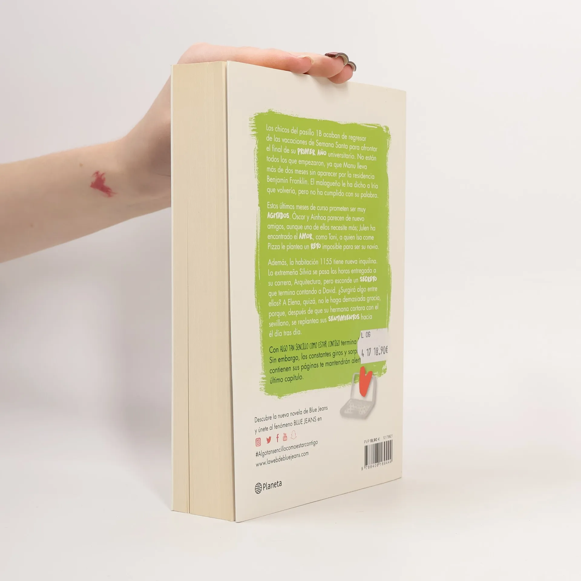 Los chicos del pasillo 1B acaban de regresar de las vacaciones de Semana Santa para afrontar el final de su primer año universitario. No están todos los que empezaron, ya que Manu lleva más de dos meses sin aparecer por la residencia Benjamin Franklin. El malagueño le ha dicho a Iria que volvería, pero no ha cumplido con su palabra. Esos últimos meses de curso prometen ser muy agitados. Óscar y Ainhoa parecen ser de nuevo amigos, aunque uno de ellos necesite más; Julen ha encontrado el amor, como Toni, a quien Isa come Pizza le plantea un reto imposible para ser su novia. Además, la habitación 1155 tiene nueva inquilina. La extremeña Silvia se pasa las horas entregada a su carrera, Arquitectura, pero esconde un secreto, que termina contando a David. ¿Surgirá algo entre ellos? A Elena, quizás, no le haga demasiada gracia, porque después de que su hermana cortara con el sevillano, se replantea sus sentimientos hacia él, día tras día. Con Algo tan sencillo como estar contigo termina la historia. Sin embargo, los constantes giros y sorpresas que contienen sus páginas te mantendrán alerta hasta el último capítulo.