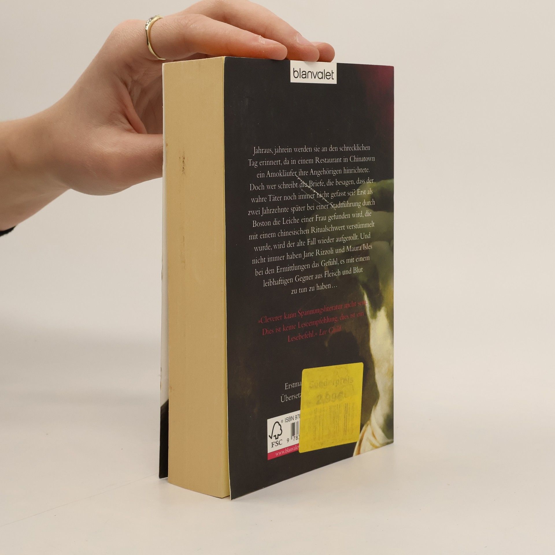 Boston, Chinatown. Eine alte Legende erwacht zum Leben … Jahraus, jahrein werden sie an den schrecklichen Tag erinnert, da in einem Restaurant in Chinatown ein Amokläufer ihre Angehörigen hinrichtete. Doch wer schreibt die Briefe, die besagen, dass der wahre Täter noch immer nicht gefasst sei? Erst als zwei Jahrzehnte später bei einer Stadtführung durch Boston die Leiche einer Frau gefunden wird, die mit einem chinesischen Ritualschwert verstümmelt wurde, wird der alte Fall wieder aufgerollt. Und nicht immer haben Jane Rizzoli und Maura Isles bei den Ermittlungen das Gefühl, es mit einem leibhaftigen Gegner aus Fleisch und Blut zu tun zu haben …