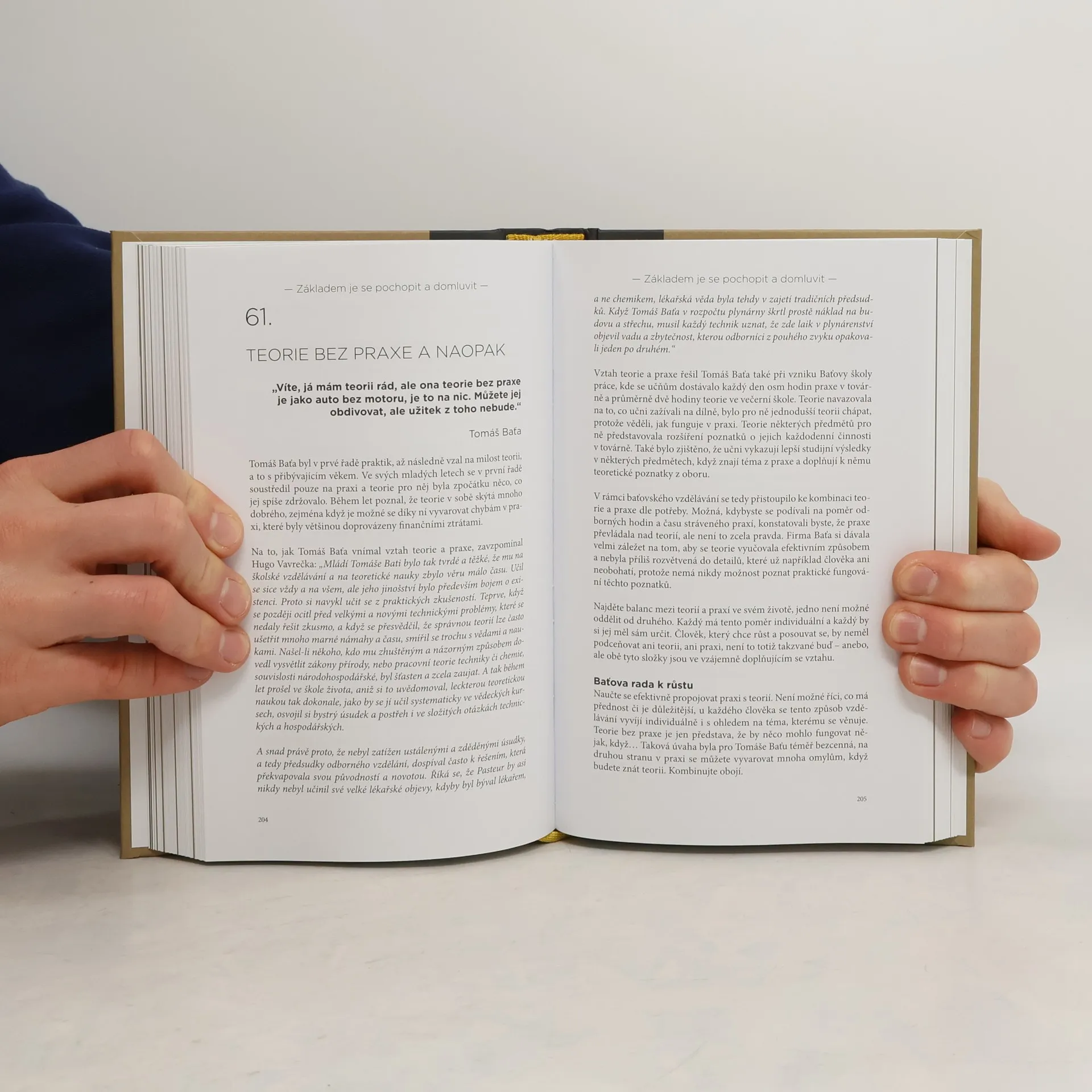 Nikdo se jako inspirativní osobnost nenarodí, člověk se inspirativní osobností stává. Ani Tomáš Baťa nebyl výjimkou. Nejenže změnil řemeslo v průmysl, dokázal pozměnit celý jeden výrobní obor a díky němu se Československo stalo největším exportérem obuvi na světě. Zejména se mu podařilo změnit myšlení lidí v jeho továrně. Měl jedno přání pro československého člověka: „Aby si přestal připadat před světem tak malý, aby uvěřil ve svou velikost“, protože Tomáš Baťa v jeho velikost věřil.Nelze uvěřit v pravou velikost jiných lidí, když člověk nezná tu vlastní. Aby člověk uvěřil ve svou vlastní velikost, a přitom jej neovládlo ego, je potřeba celoživotní odvaha a práce na sobě samém. Tomáš Baťa tuto odvahu měl.Inspirujte se osobnostním růstem Tomáše Bati. Kniha popisuje transformaci jeho myšlení a vnímání v jednotlivých dekádách života. Změny, kterými procházel v soukromém i pracovním životě, a jejich vliv na jeho osobnost.Proč si přečíst tuto knihu? Možná zjistíte, že máte s Tomášem Baťou společného více, než si myslíte, a naleznete několik rad, jak poznat lépe sebe a svůj postoj ke světu.