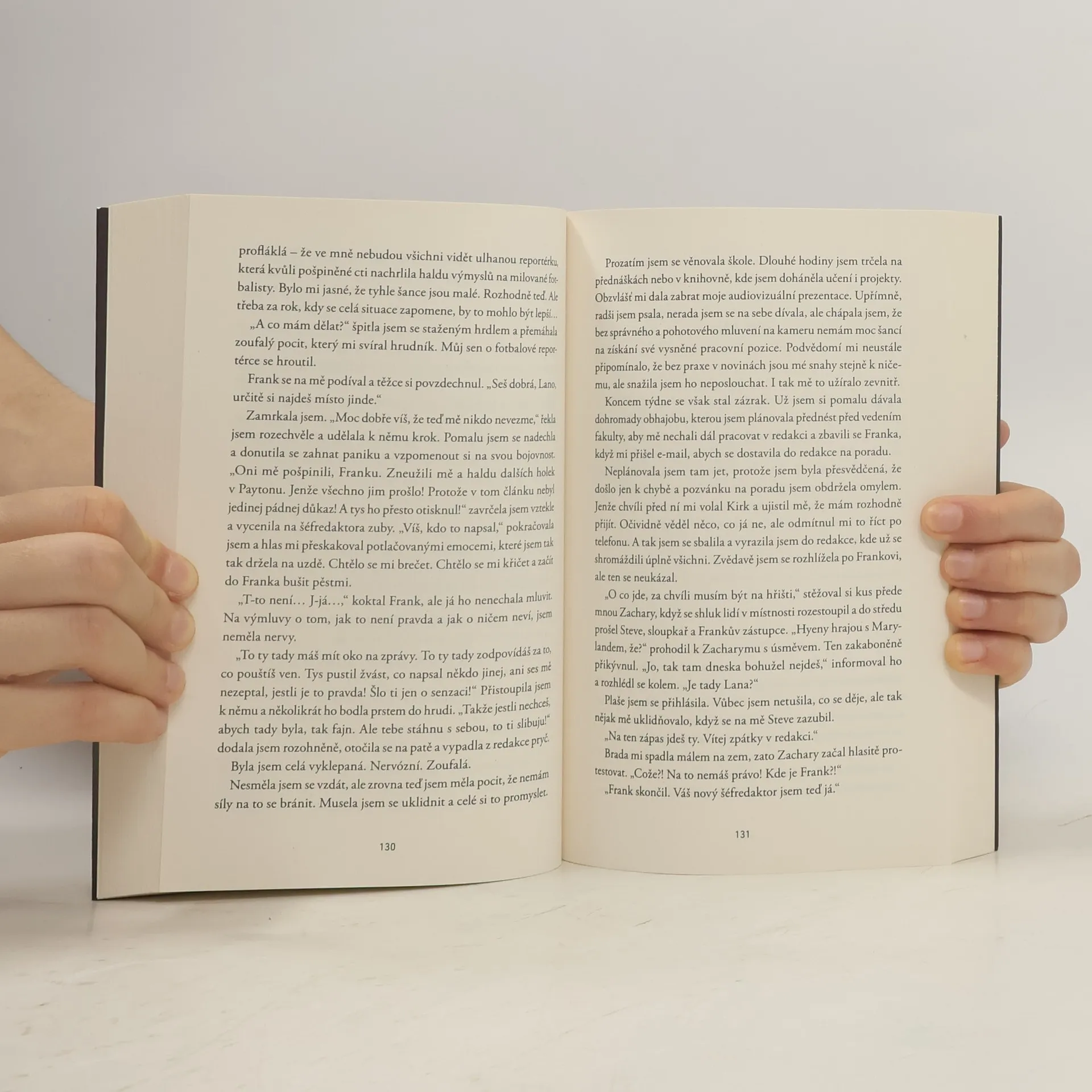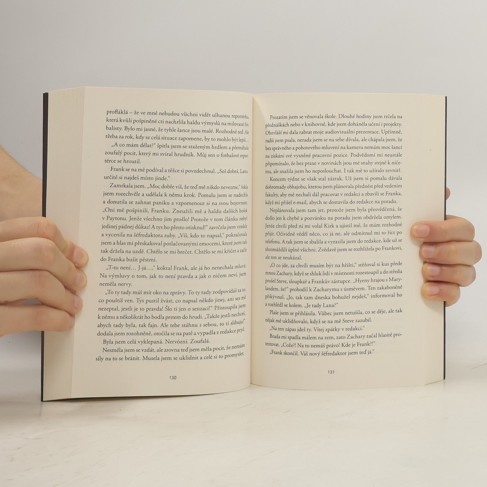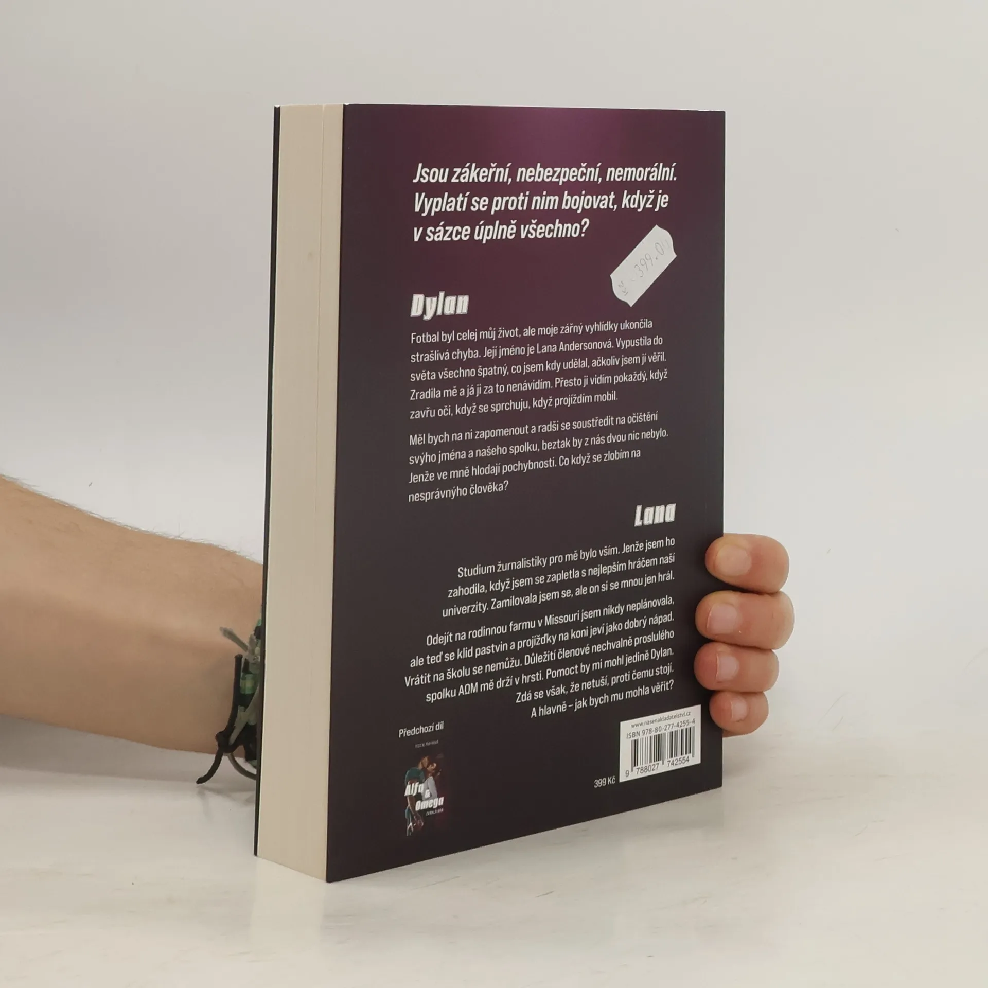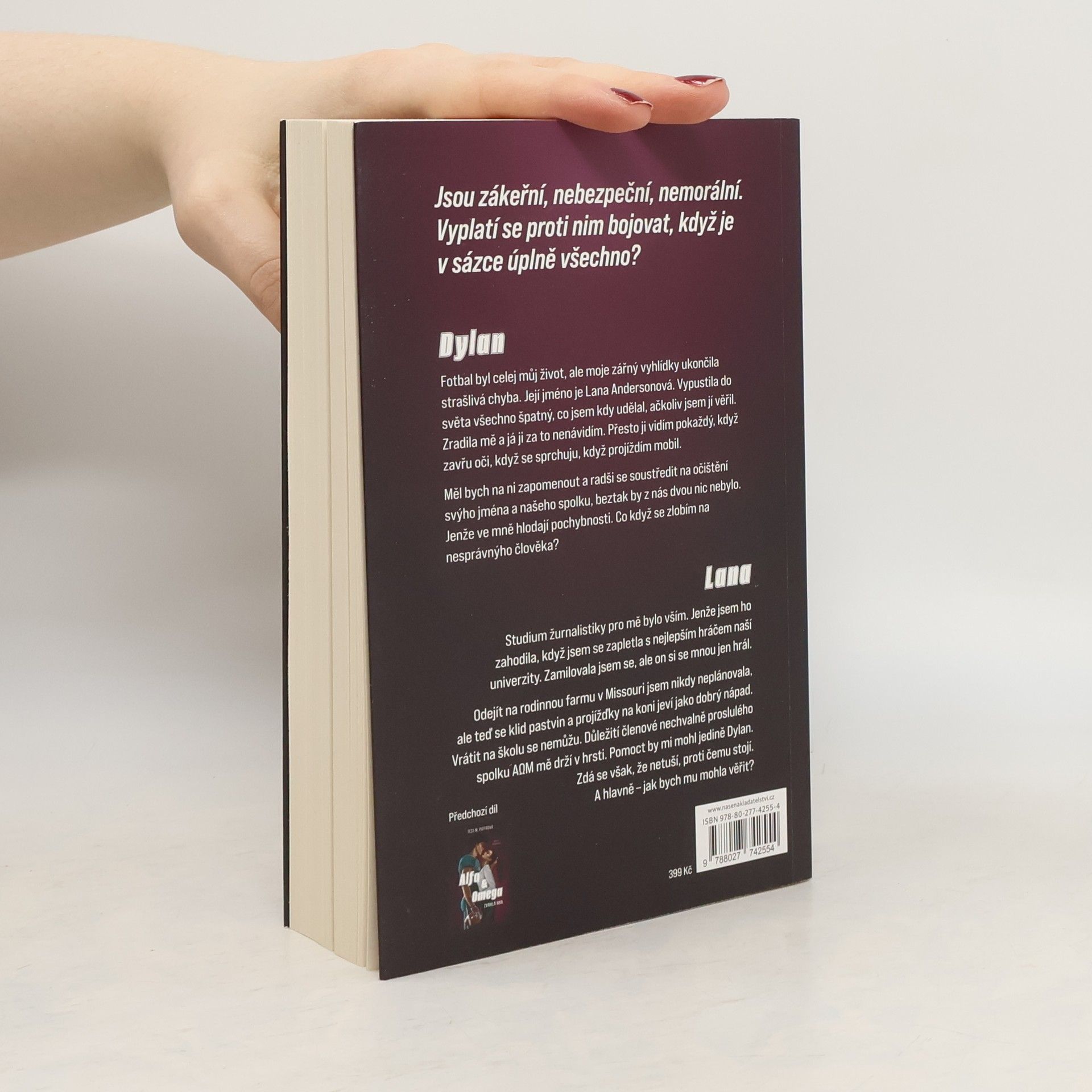 Pokračování erotického románu, v němž šťouravá novinářka odhalila nemorální chování několika hvězd školního fotbalového týmu, a tím přišla o svou lásku. Dokáže to nějak napravit? Pro Dylana byl fotbal celým jeho životem. Pro Lanu zase bylo vším studium sportovní žurnalistiky. Pak se spolu ale ti dva zapletli a... přišla zrada. V článku podepsaném Lanou bylo odhaleno všechno špatné, co kdy Dylan udělal - a také pár dalších fotbalových hvězd a členů bratrstva Alfa Omega Mí. S láskou a důvěrou je konec, a také to pro Lanu znamená odchod z univerzity. Vrací se domů na rodinnou farmu v Missouri. Jediný, kdo by ji mohl dostat zpět na školu, je Dylan. Ten už ale s Lanou nechce nic mít - i když na ní nedokáže přestat myslet.