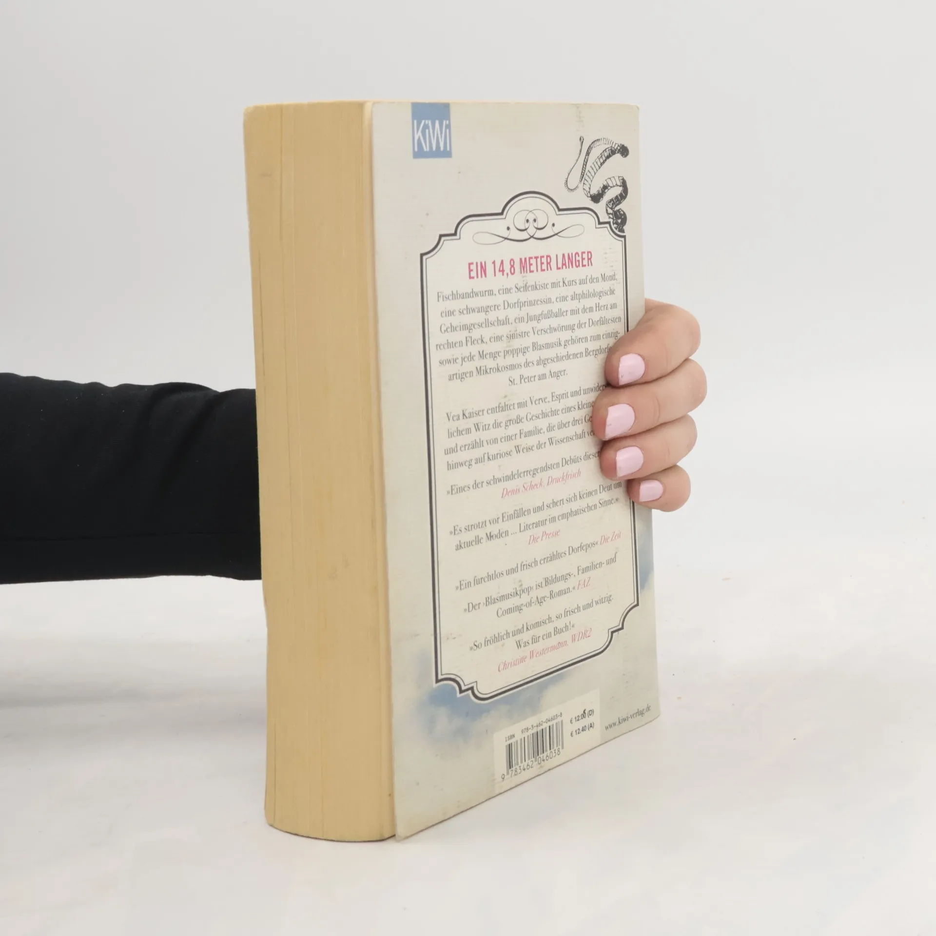 »Ein großer Literaturspaß, ein sehr gelungenes Debüt« Denis Scheck Ein 14,8 Meter langer Fischbandwurm, eine Seifenkiste mit Kurs auf den Mond, ein ungeahnt attraktiver Mönch im Jaguar, ein fallender Engel, eine schwangere Dorfprinzessin, eine altphilologische Geheimgesellschaft, eine nordic-walkende Mütterrunde, ein Jungfußballer mit dem Herz am rechten Fleck, eine sinistre Verschwörung der Dorfältesten sowie jede Menge poppige Blasmusik gehören zum unvergesslichen Mikrokosmos dieses Romans, der durch seine Hingabe an leuchtende Details und skurrile Begebenheiten, durch seinen erzählerischen Furor und seine Vielstimmigkeit besticht. Vea Kaiser entfaltet mit Verve, Esprit und unwiderstehlichem Witz die große Geschichte eines kleinen Dorfes und erzählt von einer Familie, die über drei Generationen hinweg auf kuriose Weise der Wissenschaft verfallen ist. Ein wagemutiges, herausragendes Debüt, das Kritik und Leser gleichermaßen verzaubert hat.