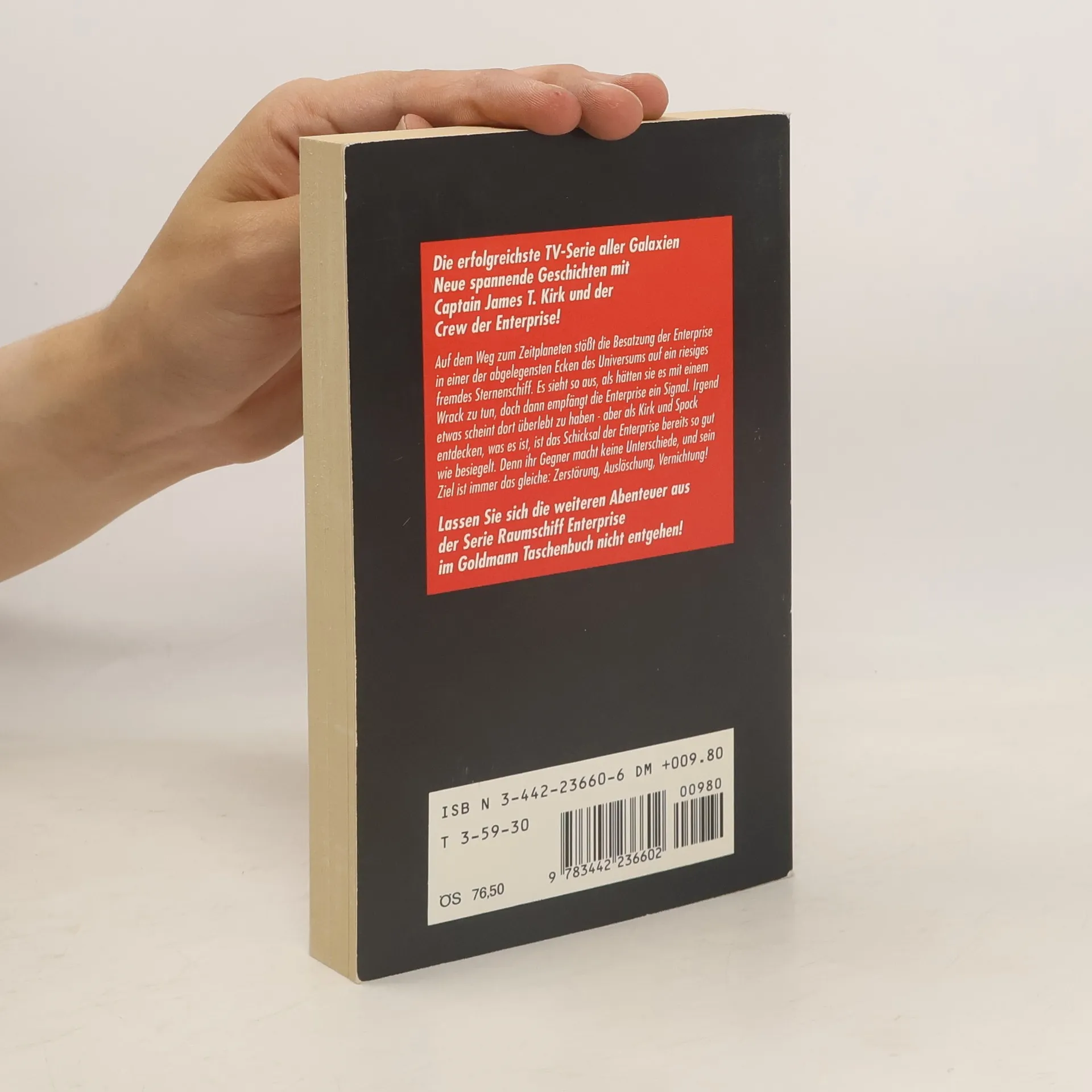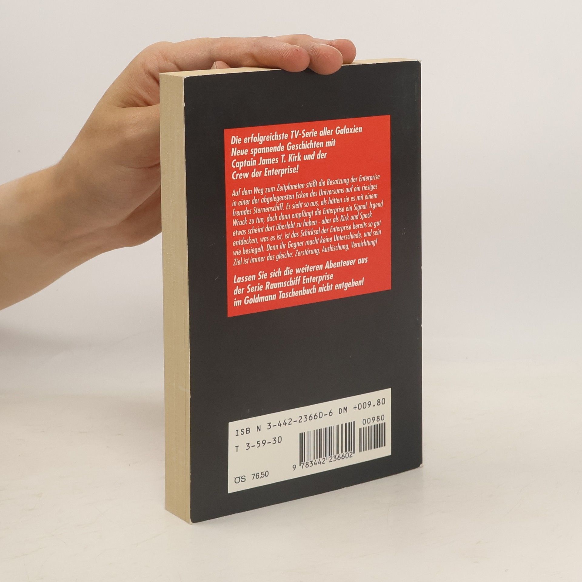 Die erfolgreichste TV-Serie aller Galaxien Neue spannende Geschichten mit Captain James T. Kirk und der Crew der Enterprise! Auf dem Weg zum Zeitplaneten stößt die Besatzung der Enterprise in einer der abgelegensten Ecken des Universums auf ein riesiges fremdes Sternenschiff. Es sieht so aus, als hätten sie es mit einem Wrack zu tun, doch dann empfängt die Enterprise ein Signal. Irgend etwas scheint dort überlebt zu haben - aber als Kirk und Spock entdecken, was es ist, ist das Schicksal der Enterprise bereits so gut wie besiegelt. Denn ihr Gegner macht keine Unterschiede, und sein Ziel ist immer das gleiche: Zerstörung, Auslöschung, Vernichtung! Lassen Sie sich die weiteren Abenteuer der Serie Raumschiff Enterprise im Goldmann Taschenbuch nicht entgehen! Enthalten sind folgende Geschichten von Alan Dean Foster: Jenseits des fernsten Sterns Die Täuschung Planet in Gefahr