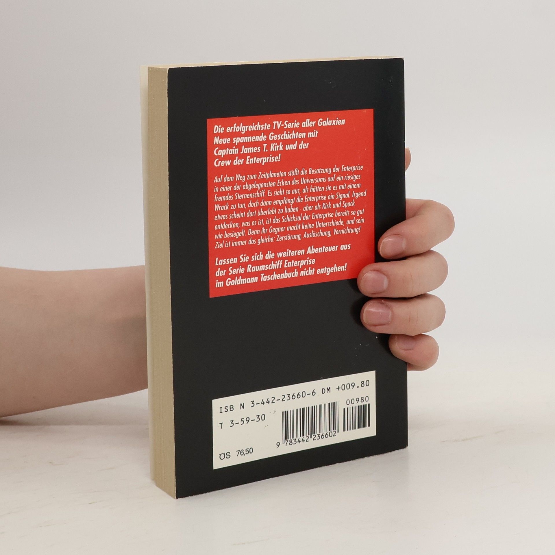 Die erfolgreichste TV-Serie aller Galaxien Neue spannende Geschichten mit Captain James T. Kirk und der Crew der Enterprise! Auf dem Weg zum Zeitplaneten stößt die Besatzung der Enterprise in einer der abgelegensten Ecken des Universums auf ein riesiges fremdes Sternenschiff. Es sieht so aus, als hätten sie es mit einem Wrack zu tun, doch dann empfängt die Enterprise ein Signal. Irgend etwas scheint dort überlebt zu haben - aber als Kirk und Spock entdecken, was es ist, ist das Schicksal der Enterprise bereits so gut wie besiegelt. Denn ihr Gegner macht keine Unterschiede, und sein Ziel ist immer das gleiche: Zerstörung, Auslöschung, Vernichtung! Lassen Sie sich die weiteren Abenteuer der Serie Raumschiff Enterprise im Goldmann Taschenbuch nicht entgehen! Enthalten sind folgende Geschichten von Alan Dean Foster: Jenseits des fernsten Sterns Die Täuschung Planet in Gefahr