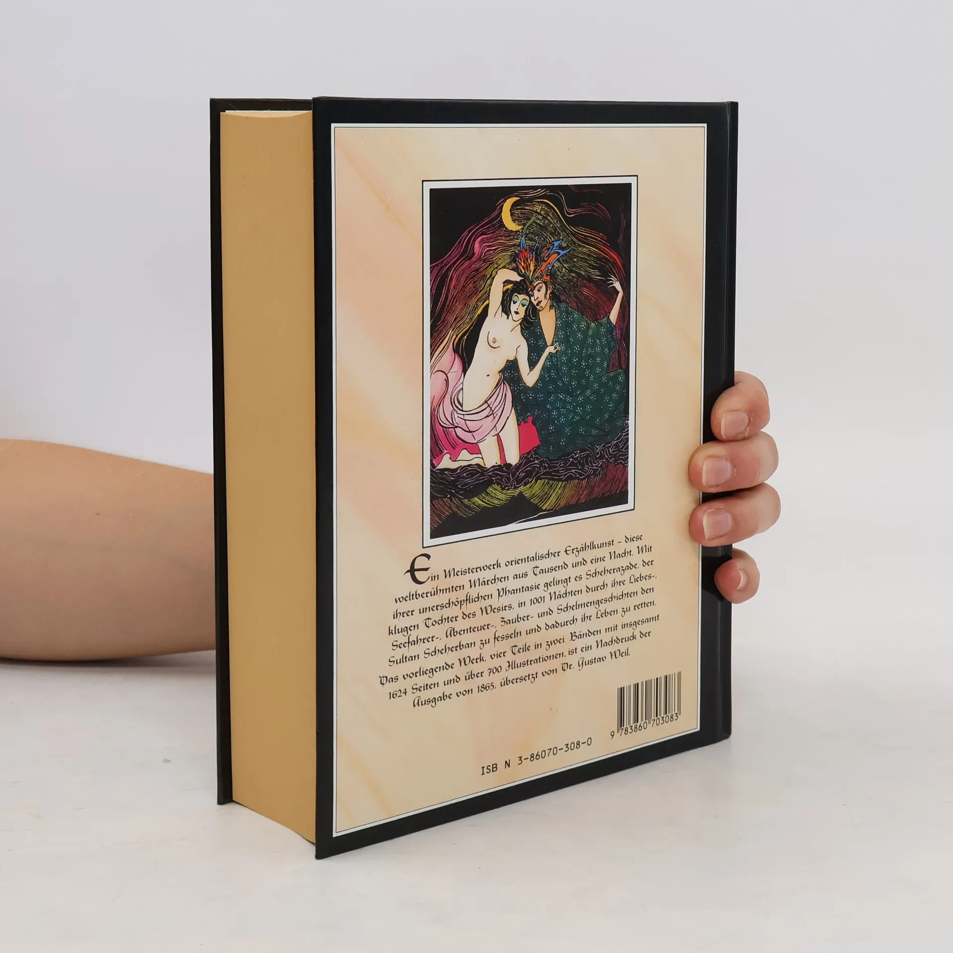 Die vorliegende Ausgabe bringt neben über 700 Illustrationen die vollständige, werkgetreue und erste deutsche Übersetzung aus arabischen Originaltexten von dem Orientalisten Gustav Weil (1808-1889). Die bekannten morgenländischen Erzählungen über Aladdin und die Wunderlampe, Ali Baba und die vierzig Räuber und Sindbad, dem Seefahrer, eingebettet in die Rahmengeschichte um den eifersüchtigen König Schehrijâr, der eine Frau nach der anderen direkt nach der Hochzeitsnacht ermordet und erst von der klugen Schehrezâd überlistet wird, begeistern seit eh und je Jung und Alt.