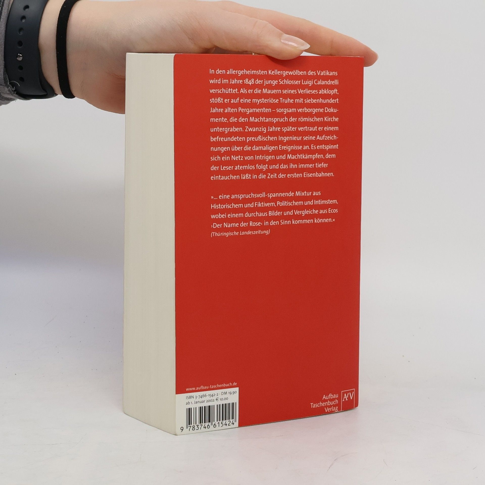 Ein historischer Thriller der Extraklasse Im Kellerlabyrinth des Vatikans wird im Jahre 1848 ein junger Schlosser verschüttet. Bei seinem Befreiungsversuch stößt er auf eine mysteriöse Truhe mit uralten Pergamenten, die den Machtanspruch der römischen Kirche untergraben. Als er zwanzig Jahre später einem Ingenieur seine Aufzeichnungen anvertraut, bringt er ihn damit in Lebensgefahr. „… eine anspruchsvoll-spannende Mixtur aus Historischem und Fiktivem, Politischem und Intimstem, wobei einem durchaus Bilder und Vergleiche aus Ecos ‚Der Name der Rose’ in den Sinn kommen können.“ Thüringische Landeszeitung