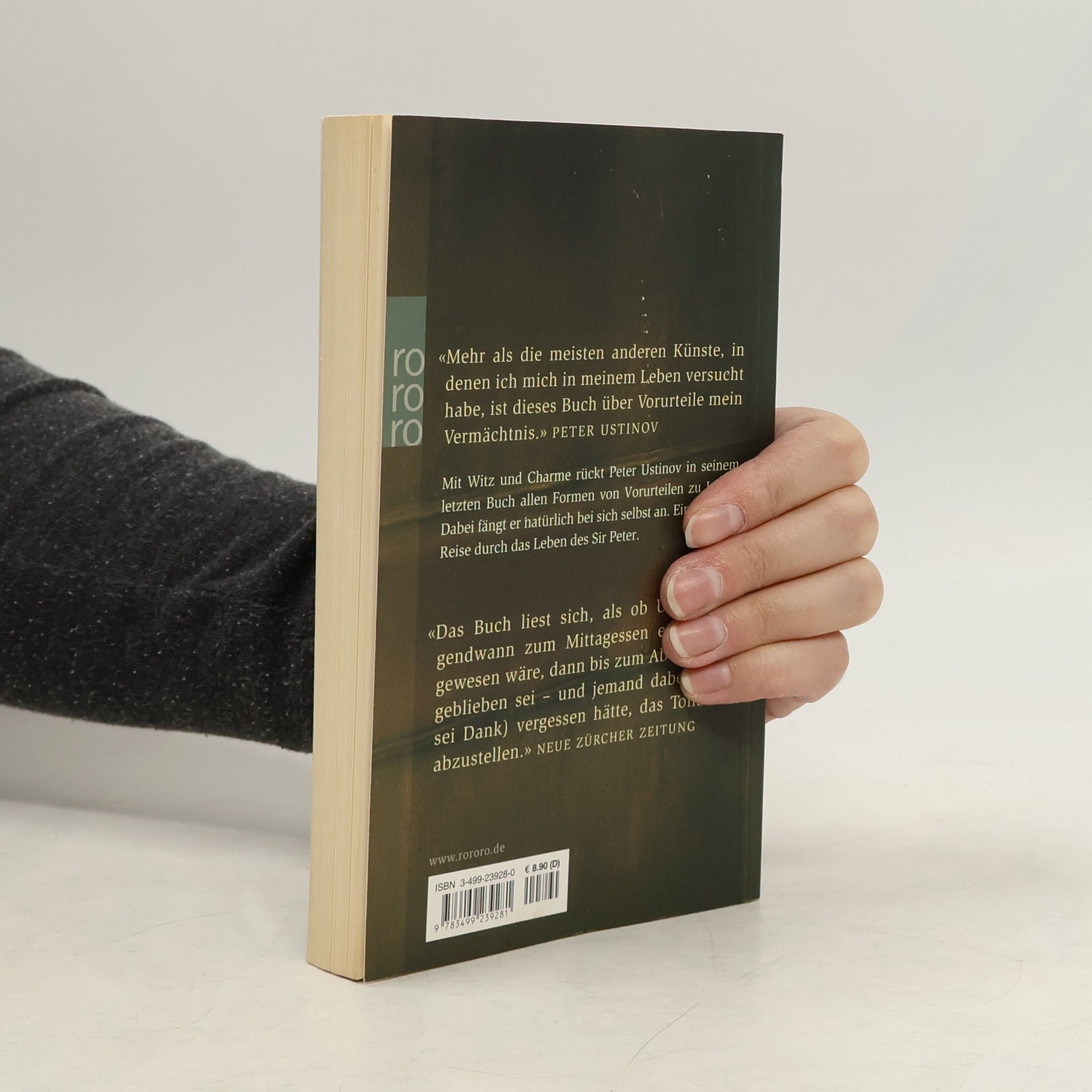 „Mehr als die meisten anderen Künste, in denen ich mich in meinen Leben versucht habe, ist dieses Buch über Vorurteile mein Vermächtnis.“ Peter UstinovMit Witz und Charme rückt Peter Ustinov in seinem letzten Buch allen Formen von Vorurteilen zu Leibe. Dabei fängt er natürlich bei sich selbst an. Eine rasante Reise durch das Leben des Sir Peter. „Das Buch liest sich, als ob Ustinov irgendwann zum Mittagessen eingeladen gewesen wäre, dann bis zum Abendessen geblieben sei – und jemand dabei (Gott sei Dank) vergessen hätte, das Tonband abzustellen.“ (Neue Zürcher Zeitung)