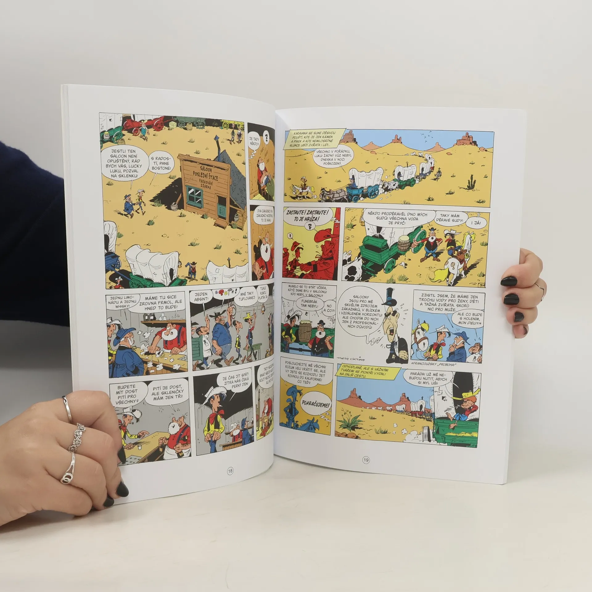 Cesta přes celé Spojené státy z východu až na západ je dlouhá a nebezpečná. Lucky Luke má však dobré srdce a rozhodne se doprovodit průkopníky až do Kalifornie. Karavana může vyrazit!