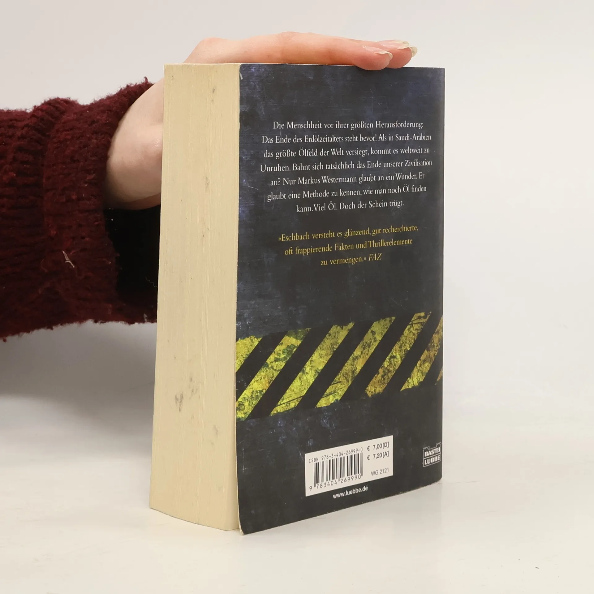 Stellen Sie sich vor, der Liter Superbenzin würde über 4 Euro kosten. Ein Albtraum? Ja. Bloß wäre es erst der Anfang. Denn das Ölzeitalter wird nicht erst mit dem letzten Barrel enden. Es endet, sobald mehr verbraucht wird, als gefördert werden kann. Und dieser Moment ist näher, als die meisten ahnen. Das Problem: Niemand hat einen Plan für die Zeit danach. Auch Markus Westermann weiß von all dem nichts, als er es endlich in die USA geschafft hat und mit seiner Karriere voll durchstarten will. Als er Karl Walter Block kennen lernt, sieht er seine Chance gekommen. Der alte Öltechniker behauptet, dass in den Tiefen der Erde noch genug Öl für die nächsten tausend Jahre schlummert - und dass nur er die Methode kennt, wie man es findet. Er braucht nur noch einen kompetenten Geschäftspartner. Jemanden wie Markus. Nur allzu bereitwillig glaubt die Welt den Versprechungen des Duos. Nach ersten Erfolgen ist gar von einer Renaissance des Ölzeitalters die Rede. Doch der Schein trügt. Als in Saudi-Arabien das größte Ölfeld der Welt versiegt und die Saudis alles daransetzen, die erschreckende Wahrheit zu vertuschen, kommt es nicht nur im Nahen Osten zu Unruhen. Die Menschheit steht plötzlich vor ihrer größten Herausforderung. Das Ende der Welt, wie wir sie kennen, bahnt sich an. Einzig Markus ist überzeugt, das Ruder noch einmal herumreißen zu können
