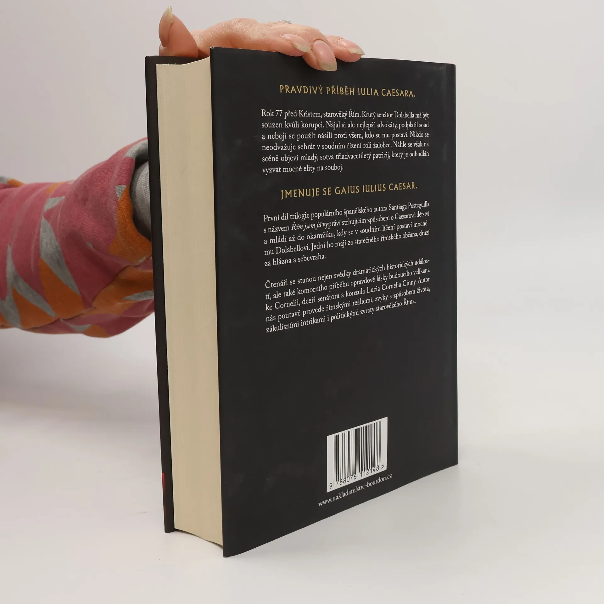Rok 77 před Kristem, starověký Řím. Krutý senátor Dolabella má být souzen kvůli korupci. Najal si ale nejlepší advokáty, podplatil soud a nebojí se použít násilí proti všem, kdo se mu postaví. Nikdo se neodvažuje sehrát v soudním řízení roli žalobce. Náhle se však na scéně objeví mladý, sotva třiadvacetiletý patricij, který jeodhodlán vyzvat mocné elity na souboj. Jmenuje se Gaius Iulius Caesar. První díl trilogie populárního španělského autora Santiaga Posteguilla s názvem Řím jsem já vypráví strhujícím způsobem o Caesarově dětství a mládí až do okamžiku, kdy se v soudním líčení postaví mocnému Dolabellovi. Jedni ho mají za statečného římského občana, druzí za blázna a sebevraha. Čtenáři se stanou nejen svědky dramatických historických událostí, ale také komorního příběhu opravdové lásky budoucího velikána ke Cornelii, dceři senátora a konzula Lucia Cornelia Cinny. Autor nás poutavě provede římskými reáliemi, zvyky a způsobem života, zákulisními intrikami i politickými zvraty starověkého Říma.