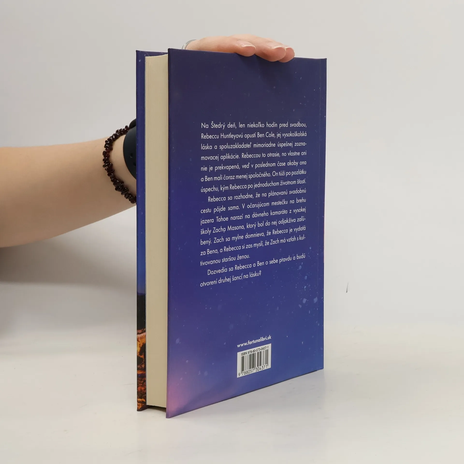 Na Štedrý večer, len niekoľko hodín pred svadbou, Rebeccu Huntleyovú opustí Ben Cole, jej vysokoškolská láska a spoluzakladateľ mimoriadne ús-pešnej zoznamovacej aplikácie. Rebeccou to otrasie, no vlastne ani nie je prekvapená, veď v poslednom čase akoby ona a Ben mali čoraz menej spoločného. On túži po pozlátku úspechu, kým Rebecca po jednoduchom životnom šťastí. Rebecca sa rozhodne, že na pôvodne plánovanú svadobnú cestu pôjde sama. V očarujúcom mestečku na brehu jazera Tahoe narazí na dávneho kamaráta z vysokej školy Zacha Masona, ktorý bol do nej odjakživa zaľú-bený. Zach sa mylne domnieva, že Rebecca je vydatá za Bena, a Rebecca si zas myslí, že Zach má vzťah s kultivovanou staršou ženou. Dozvedia sa Rebecca a Ben o sebe pravdu a budú otvorení druhej šanci na lásku?