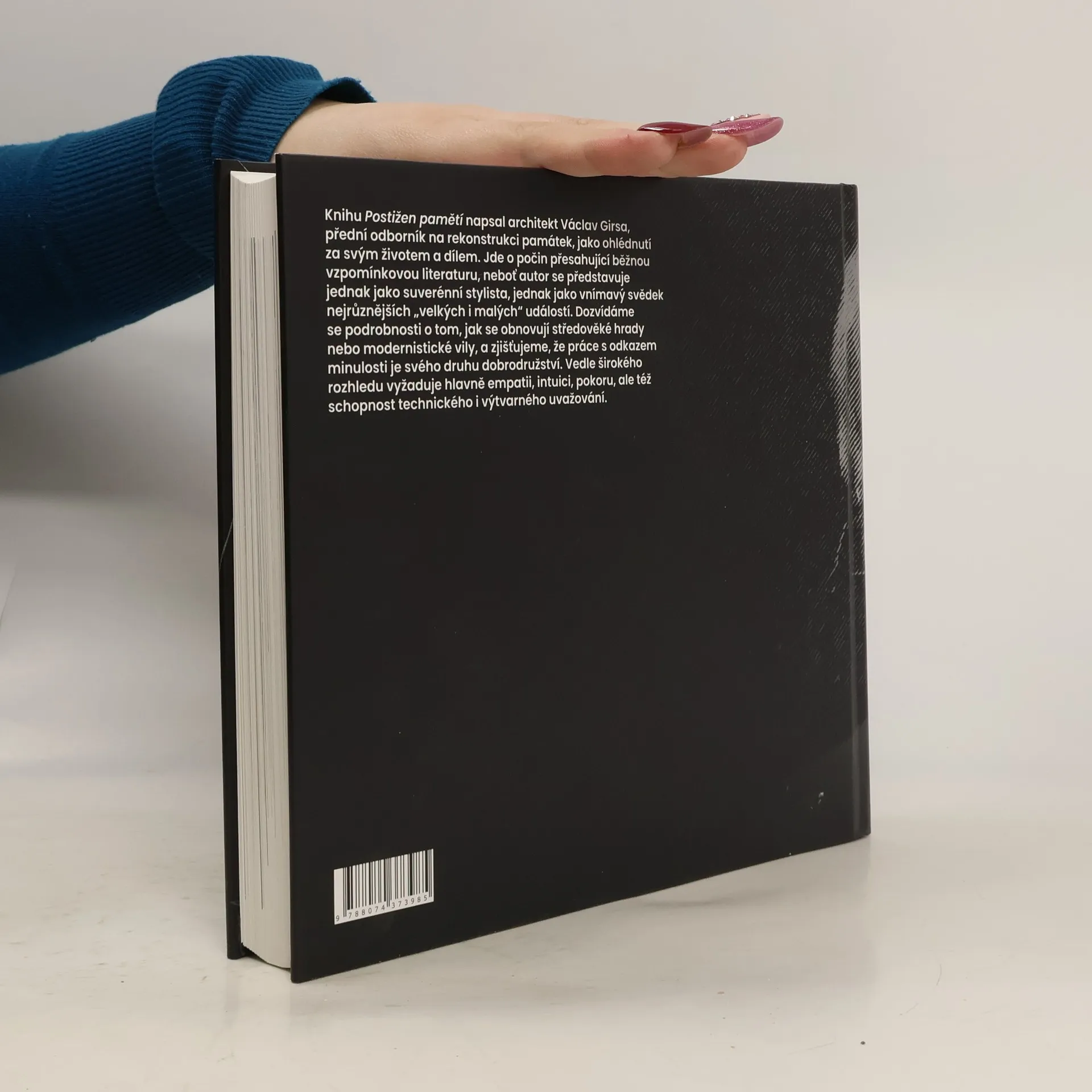 Knihu Postižen pamětí napsal architekt Václav Girsa, přední odborník na rekonstrukci památek, jako ohlédnutí za životem a dílem. Jde o počin přesahující běžnou vzpomínkovou literaturu, neboť autor se představuje jednak jako suverénní stylista, jednak jako vnímavý svědek nejrůznějších "velkých i malých" událostí. Dozvídáme se podrobnosti o tom, jak restauroval vilu od slavného Adolfa Loose na pražské Ořechovce, obnovoval barokní divadlo v Českém Krumlově nebo středověké hrady Bezděz, Bečov a Houska. Zjišťujeme, že práce s odkazem minulosti je svého druhu dobrodružství. Vedle širokého rozhledu vyžaduje: empatii, intuici, pokoru, schopnost technického i výtvarného uvažování, ale také neústupnost a důslednost. Knihu doprovázejí fotografie a skici Václava Girsy, které z ní činí kompaktní a nadčasové dílo.
