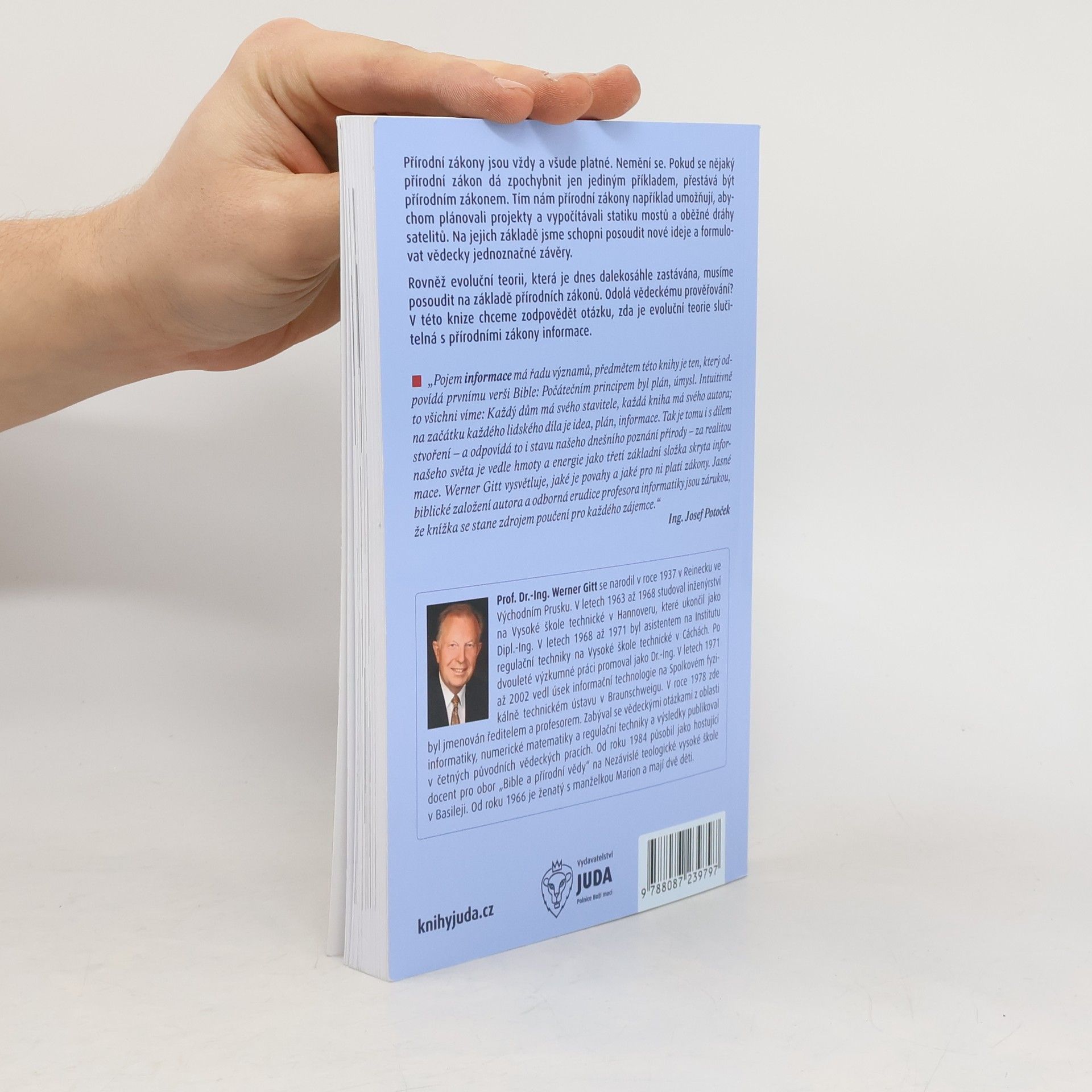 Přírodní zákony jsou vždy a všude platné. Nemění se. Pokud se nějaký přírodní zákon dá zpochybnit jen jediným příkladem, přestává být přírodním zákonem. Tím nám přírodní zákony například umožňují, abychom plánovali projekty a vypočítávali statiku mostů a oběžné dráhy satelitů. Na jejich základě jsme schopni posoudit nové ideje a formulovat vědecky jednoznačné závěry. Rovněž evoluční teorii, která je dnes dalekosáhle zastávána, musíme posoudit na základě přírodních zákonů. Odolá vědeckému prověřování? V této knize chceme zodpovědět otázku, zda je evoluční teorie slučitelná s přírodními zákony informace.