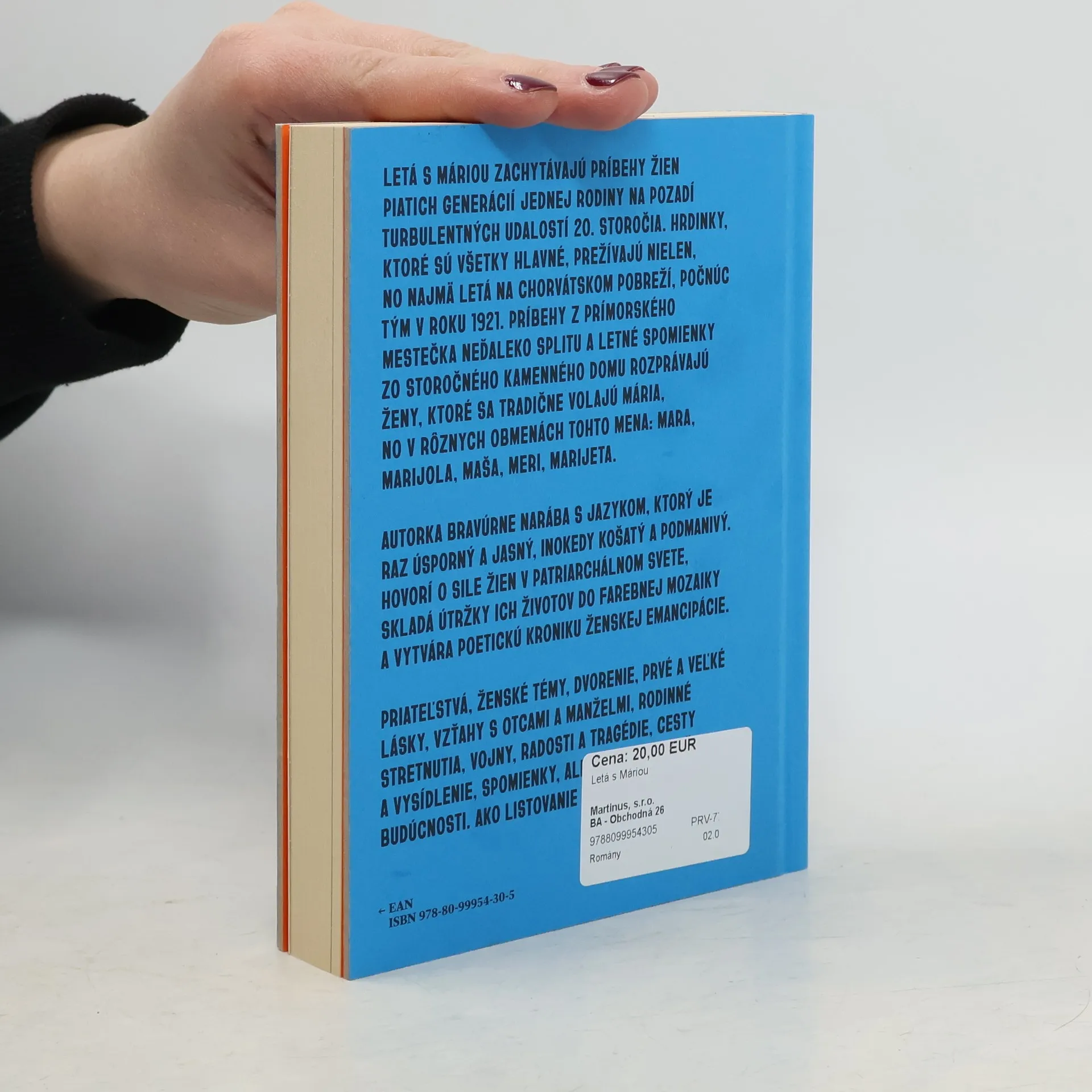 Letá s Máriou zachytávajú príbehy žien piatich generácií jednej rodiny na pozadí turbulentných udalostí 20. storočia. Hrdinky, ktoré sú všetky hlavné, prežívajú nielen, no najmä letá na chorvátskom pobreží, počnúc tým v roku 1921. Príbehy z prímorského mestečka neďaleko Splitu a letné spomienky zo storočného kamenného domu rozprávajú ženy, ktoré sa tradične volajú Mária, no v rôznych obmenách tohto mena: Mara, Marijola, Maša, Meri, Marijeta. Autorka bravúrne narába s jazykom, ktorý je raz úsporný a jasný, inokedy košatý a podmanivý. Hovorí o sile žien v patriarchálnom svete, skladá útržky ich životov do farebnej mozaiky a vytvára poetickú kroniku ženskej emancipácie. Priateľstvá, ženské témy, dvorenie, prvé a veľké lásky, vzťahy s otcami a manželmi, rodinné stretnutia, vojny, radosti a tragédie, cesty a vysídlenie, spomienky, ale aj sny o krajšej budúcnosti. Ako listovanie rodinným albumom.