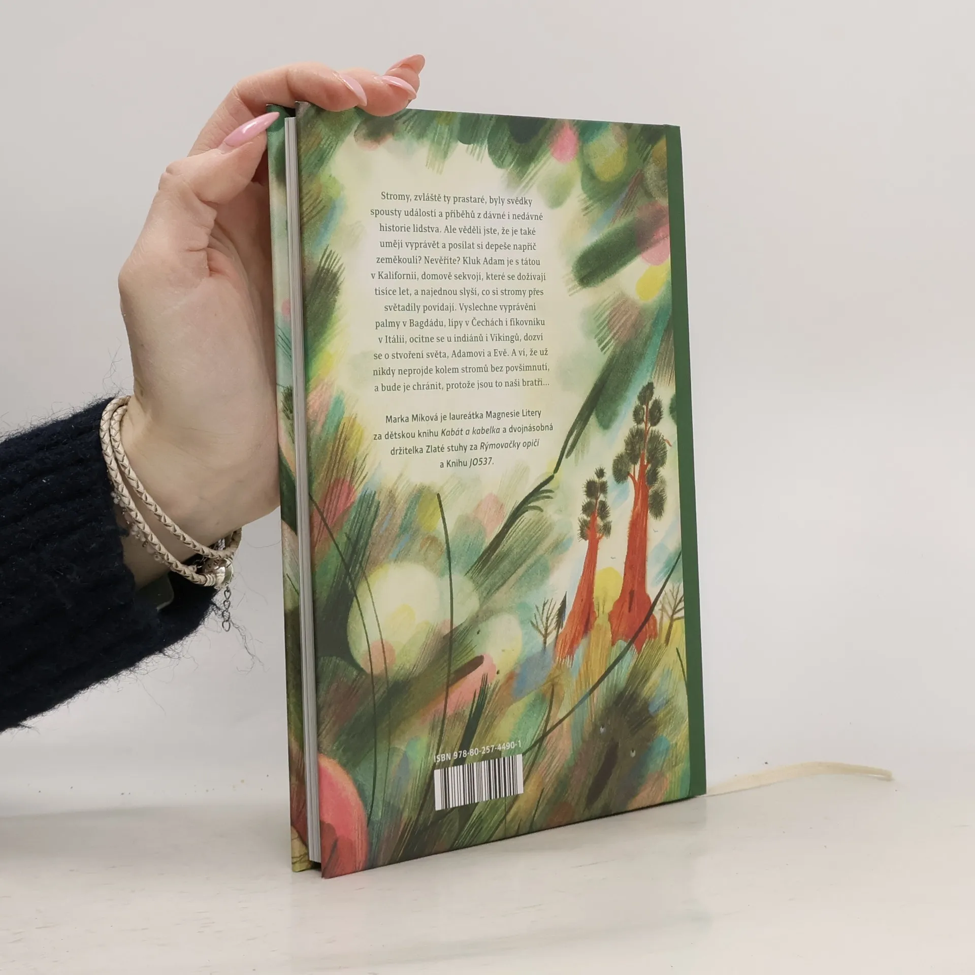Stromy, zvláště ty prastaré, jsou svědky spousty událostí a příběhů z dávné i nedávné historie lidstva. Ale věděli jste, že je také umějí vyprávět a posílat si depeše napříč zeměkoulí? Nevěříte? Kluk Adam je s tátou v Kalifornii, domovu sekvojí, které se dožívají tisíce let, a najednou slyší, co si stromy přes světadíly povídají. Vyslechne vyprávění palmy v Bagdádu, lípy v Čechách i fíkovníku v Itálii, ocitne se u indiánů i Vikingů, dozví se o stvoření světa, Adamovi a Evě. Když se pak vrací domů do Čech, odnáší si rozhodnutí, že své dřevěné kamarády bude po celý život chránit. A podobné rozhodnutí si možná odnesete i vy. Určitě vás zaujme i neobvyklá struktura vyprávění připomínající rozvětvený strom (trošku ve stylu gamebooků): na jedné „větvi“ se příběh rozvine a na jiné pokračuje.