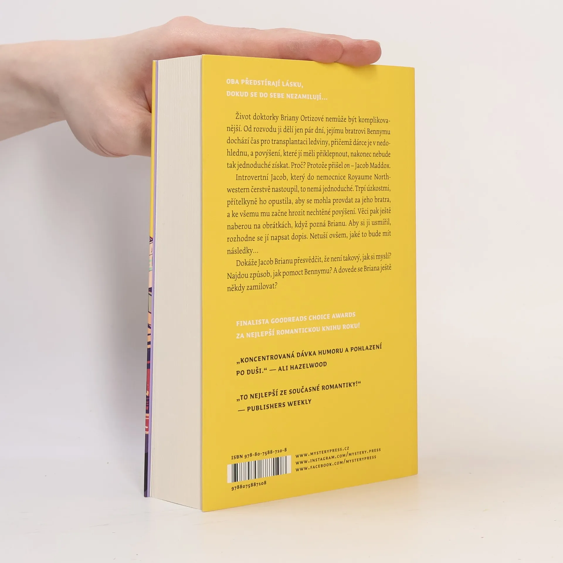 VTIPNÁ A DOJEMNÁ ROMANCE OD AUTORKY BESTSELLERU SOUČÁST TVÉHO SVĚTA... Život doktorky Briany Ortizové nemůže být komplikovanější. Od rozvodu ji dělí jen pár dní, jejímu bratrovi Bennymu dochází čas pro transplantaci ledviny, přičemž dárce je v nedohlednu, a povýšení, které jí měli přiklepnout, nakonec nebude tak jednoduché získat. Proč? Protože přišel on – Jacob Maddox. Introvertní Jacob, který do nemocnice Royaume Northwestern čerstvě nastoupil, to nemá jednoduché. Trpí úzkostmi, přítelkyně ho opustila, aby se mohla provdat za jeho bratra, a ke všemu mu začne hrozit nechtěné povýšení. Věci pak ještě naberou na obrátkách, když pozná Brianu. Aby si ji usmířil, rozhodne se jí napsat dopis. Netuší ovšem, jaké to bude mít následky… Dokáže Jacob Brianu přesvědčit, že není takový, jak si myslí? Najdou způsob, jak pomoct Bennymu? A dovede se Briana ještě někdy zamilovat?