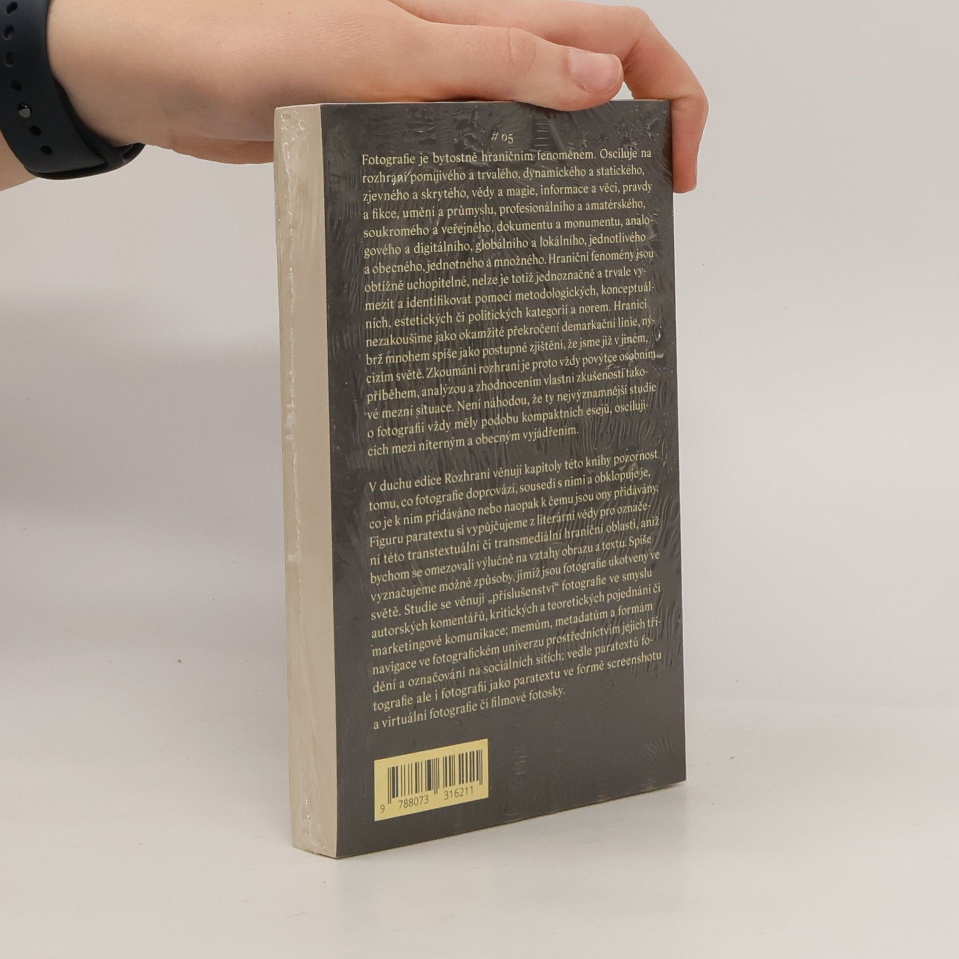 V duchu edice Rozhraní věnují kapitoly této knihy pozornost tomu, co fotografie doprovází, sousedí s nimi a obklopuje je, co je k nim přidáváno nebo naopak k čemu jsou ony přidávány. Figuru paratextu si vypůjčujeme z literární vědy pro označení této transtextuální či transmediální hraniční oblasti, aniž bychom se omezovali výlučněna vztahy obrazu a textu, jako spíše vyznačili možné způsoby, jimiž jsou fotografie ukotveny ve světě. Studie se věnují „příslušenství“ fotografie ve smyslu autorských komentářů, kritických a teoretických pojednání či marketingové komunikace; memům, metadatům a formám navigace ve fotografickém univerzu prostřednictvím jejich třídění a označování na sociálních sítích; vedle paratextů fotografie ale i fotografii jako paratextu ve formě screenshotu a virtuální fotografie či filmové fotosky.