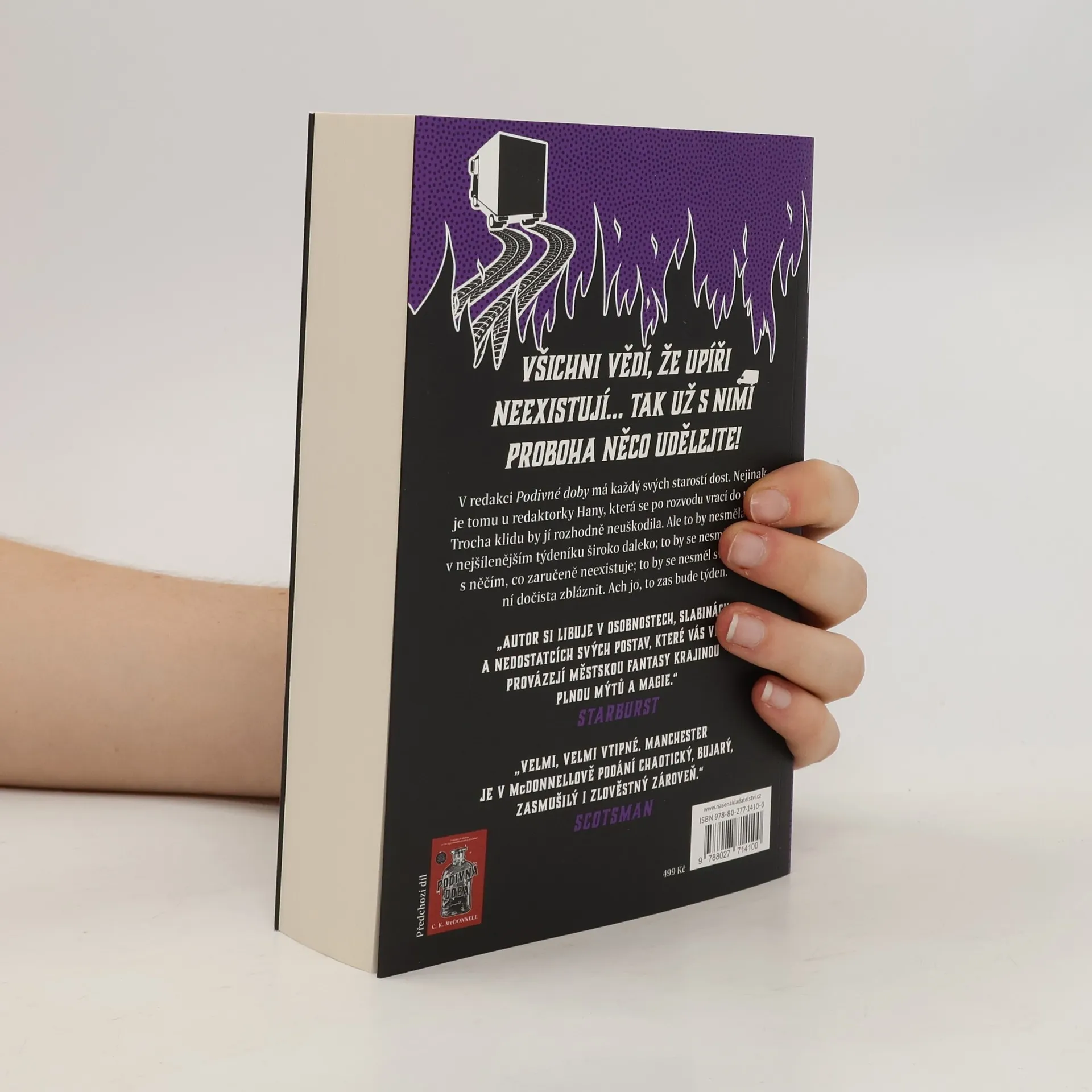 Upíři neexistují. To ví každý. Proto je značně nemilé, když se různě po Manchesteru najednou začnou objevovat… Nikdo z toho nemá radost. Ani Zakladatelé, tajná organizace, kterou měli upíři coby alegorie původně reprezentovat, ani Kmen, lidé obdaření magickými schopnostmi, kteří si chtějí jen nerušeně žít vlastní život. A už vůbec ne obyvatelé Manchesteru, protože vražedné řádění takové alegorie utržené ze řetězu opravdu není nic příjemného. Někdo musí hodně rychle zasáhnout – a kdo jiný by to měl být než redakce Podivné doby! Ne že by neměli svých starostí dost. Redaktorka Hana se právě vrátila po rozvodovém řízení a hned se dozvídá, že se kdosi pokouší unést jistého člena jejich týmu. Šéfredaktor Vincent Banecroft by se sice rád s leckým ze své družiny rozloučil, ale nesnese představu, že se ho tu někdo snaží obrat – jde o princip. Když k tomu připočteme prekérní situaci s nefunkční koupelnou, dluhy z hazardu, zcela nový způsob používání vulgarit a jistého inspektora, získáme další hektický týden v životě novinové redakce, která se zavázala informovat o pravdě, s níž nikdo jiný nechce mít nic společného.