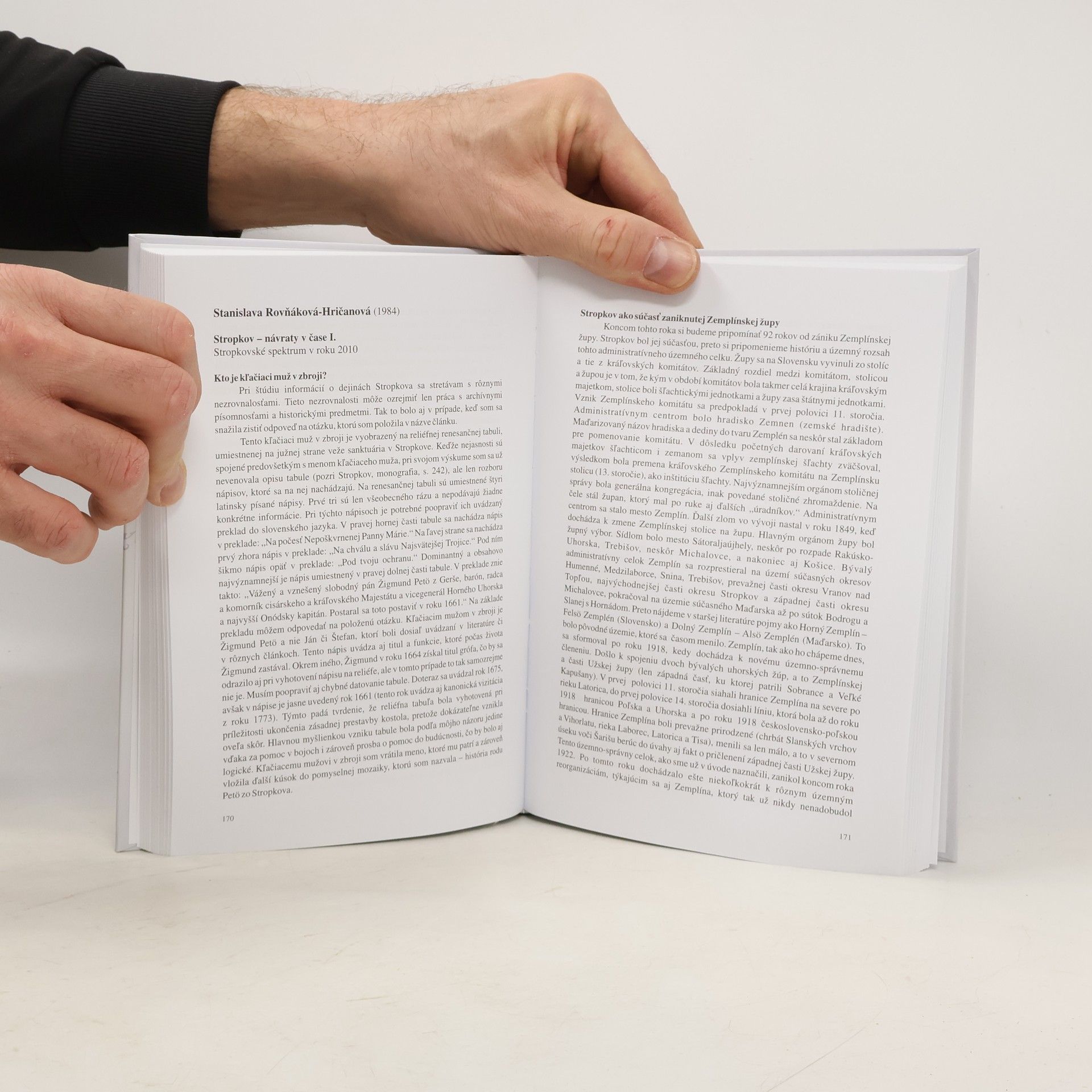 Kniha je zborníkom textov, ktoré o meste vznikli od 18. storočia po súčasnosť. Na viac ako 300 stranách sa dočítame, ako malé mestečko v minulosti zaujalo osobnosti ako P. O. Hviezdoslav, Matej Bel, Ján Beňko, Mór Jókai, Peter Jaroš či autora prvej monografie o Stropkove Ede Unghváryho.
