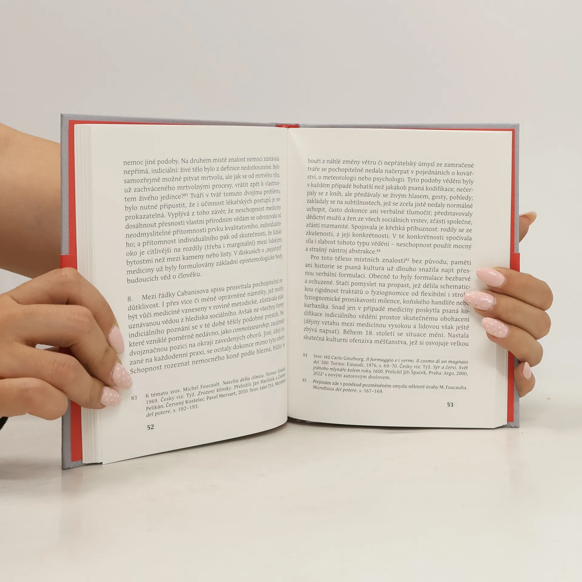 Italský kulturní historik a teoretik Carlo Ginzburg proslul zejména svými „mikrohistorickými“ studiemi – texty zaměřenými na každodenní, lokální a individuální události, osoby či komunity, v jejichž příbězích zároveň prosvítají obecnější problémy dané doby. V této studii představuje nástup epistemologického modelu na konci devatenáctého století, založeného na čtení zdánlivě nepodstatných, nepatrných detailů coby symptomů nějaké komplexnější, přímo nepřístupné skutečnosti. Přístup osvětluje na třech vzájemně souvisejících případech: technice atribucí uměleckých děl Giovanniho Morelliho, psychoanalytické metodě Sigmunda Freuda a detektivních postupech Sherlocka Holmese. Všichni tři byli původním vzděláním lékaři. Právě z medicíny přenesli do svých jednotlivých oborů základní princip svých metod, model lékařské sémiotiky, který nemoci nerozeznatelné přímým pozorováním diagnostikuje na základě povrchních symptomů v kontextu každého jednotlivého případu. Totéž se dle Ginzburga týká i věd o člověku, jež z modelu lékařské sémiotiky vycházejí (včetně historiografie, jak ji sám chápe a praktikuje).