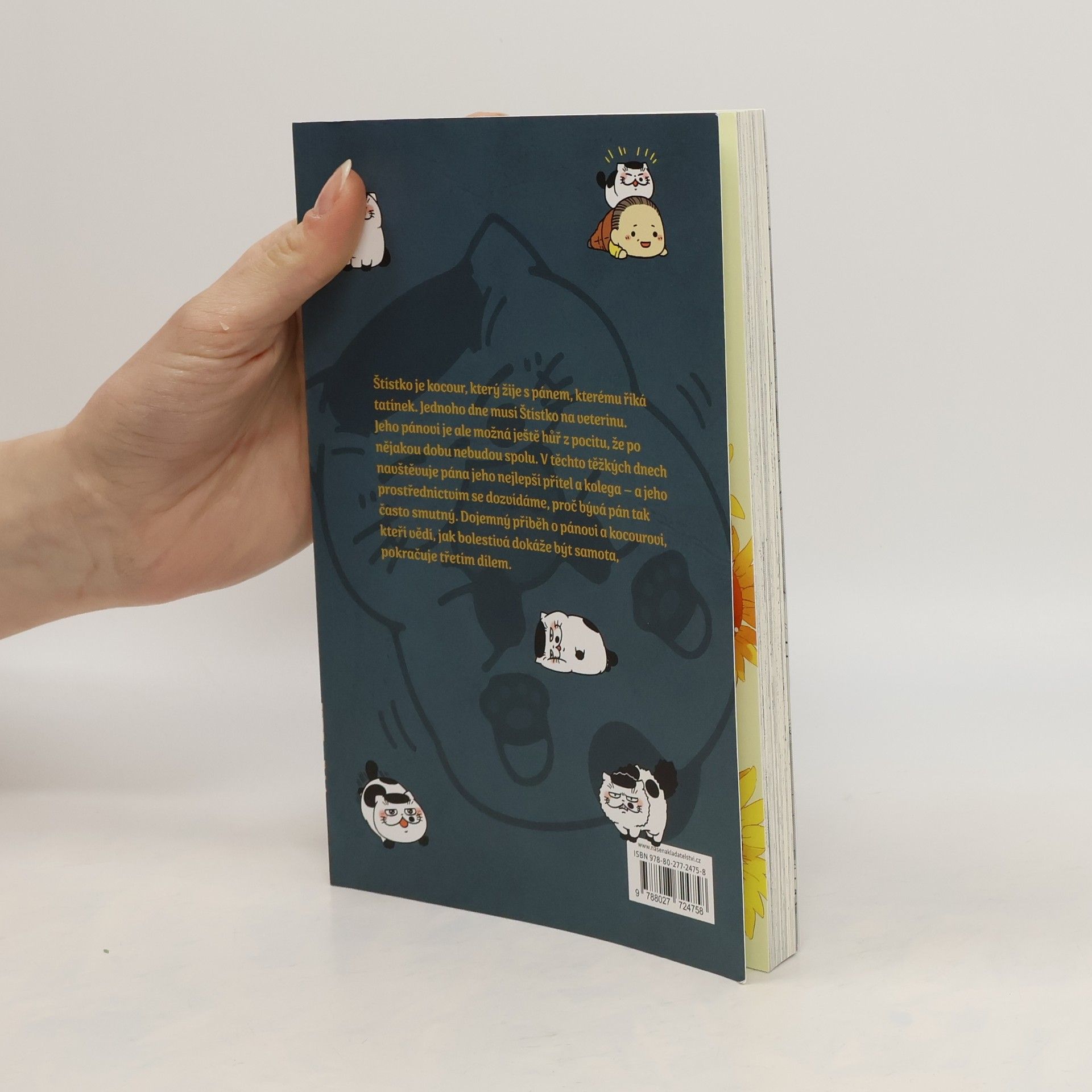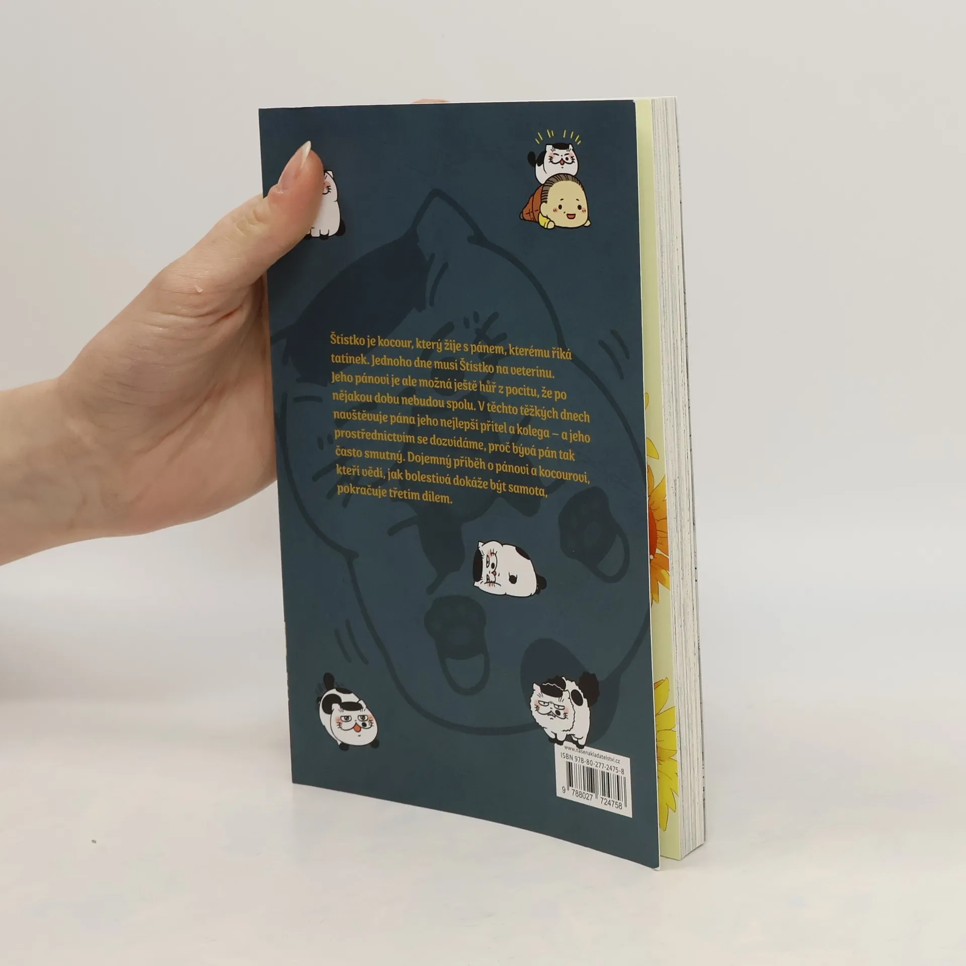 Štístko je kocour, který žije s pánem, kterému říká tatínek. Jednoho dne musí Štístko na veterinu, protože se necítí dobře. Jeho pánovi je ale možná ještě hůř z pocitu, že po nějakou dobu nebudou spolu. V těchto těžkých dnech navštěvuje pána jeho nejlepší přítel a kolega – a jeho prostřednictvím se dozvídáme, proč bývá pán tak často smutný. Dojemný příběh o pánovi a kocourovi, kteří vědí, jak bolestivá dokáže být samota, pokračuje třetím dílem.