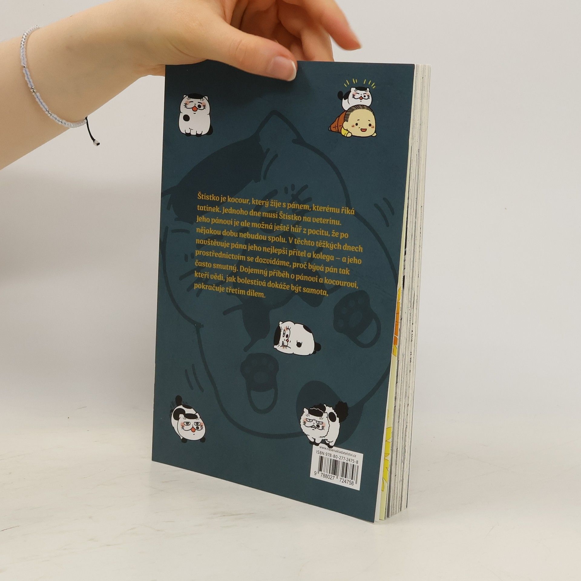 Štístko je kocour, který žije s pánem, kterému říká tatínek. Jednoho dne musí Štístko na veterinu, protože se necítí dobře. Jeho pánovi je ale možná ještě hůř z pocitu, že po nějakou dobu nebudou spolu. V těchto těžkých dnech navštěvuje pána jeho nejlepší přítel a kolega – a jeho prostřednictvím se dozvídáme, proč bývá pán tak často smutný. Dojemný příběh o pánovi a kocourovi, kteří vědí, jak bolestivá dokáže být samota, pokračuje třetím dílem.