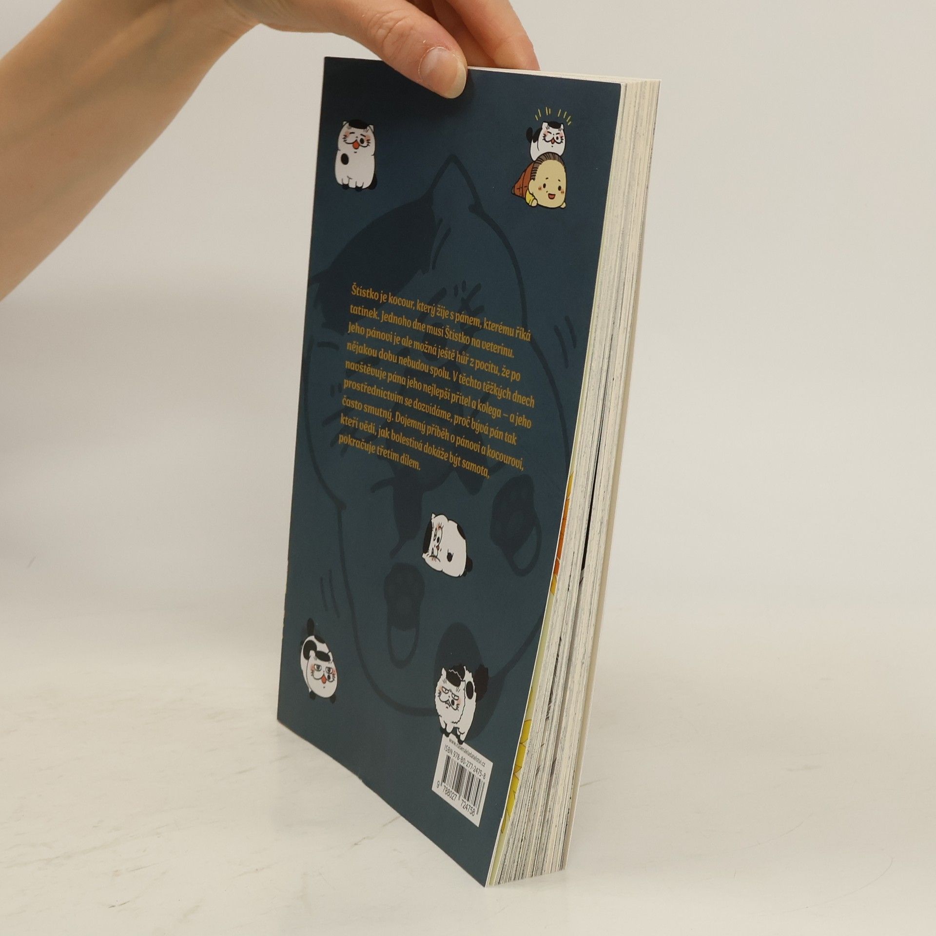 Štístko je kocour, který žije s pánem, kterému říká tatínek. Jednoho dne musí Štístko na veterinu, protože se necítí dobře. Jeho pánovi je ale možná ještě hůř z pocitu, že po nějakou dobu nebudou spolu. V těchto těžkých dnech navštěvuje pána jeho nejlepší přítel a kolega – a jeho prostřednictvím se dozvídáme, proč bývá pán tak často smutný. Dojemný příběh o pánovi a kocourovi, kteří vědí, jak bolestivá dokáže být samota, pokračuje třetím dílem.