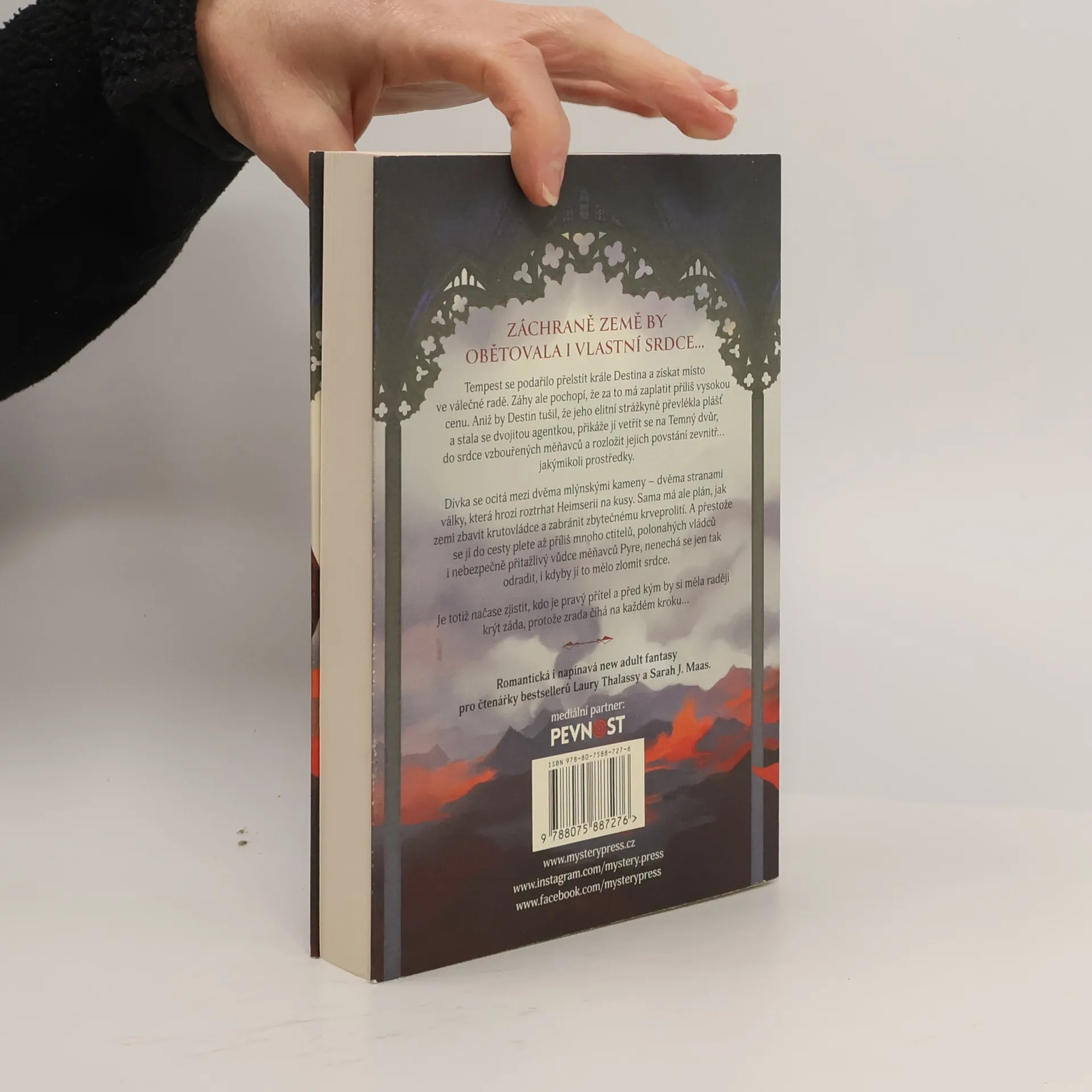 CESTA OHAŘKY TEMPEST JE ZBROCENÁ KRVÍ, PLNÁ MRTVÝCH TĚL A STŘEPŮ JEJÍHO SRDCE... Tempest se podařilo přelstít krále Destina a získat místo ve válečné radě. Záhy ale pochopí, že za to má zaplatit příliš vysokou cenu. Aniž by Destin tušil, že jeho elitní strážkyně převlékla plášť a stala se dvojitou agentkou, přikáže jí vetřít se na Temný dvůr, do srdce vzbouřených měňavců a rozložit jejich povstání zevnitř… jakýmikoli prostředky. Dívka se ocitá mezi dvěma mlýnskými kameny – dvěma stranami války, která hrozí roztrhat Heimserii na kusy. Sama má ale plán, jak zemi zbavit krutovládce a zabránit zbytečnému krveprolití. A přestože se jí do cesty plete až příliš mnoho ctitelů, polonahých vládců i nebezpečně přitažlivý vůdce měňavců Pyre, nenechá se jen tak odradit, i kdyby jí to mělo zlomit srdce. Je totiž načase zjistit, kdo je pravý přítel a před kým by si měla raději krýt záda, protože zrada číhá na každém kroku…