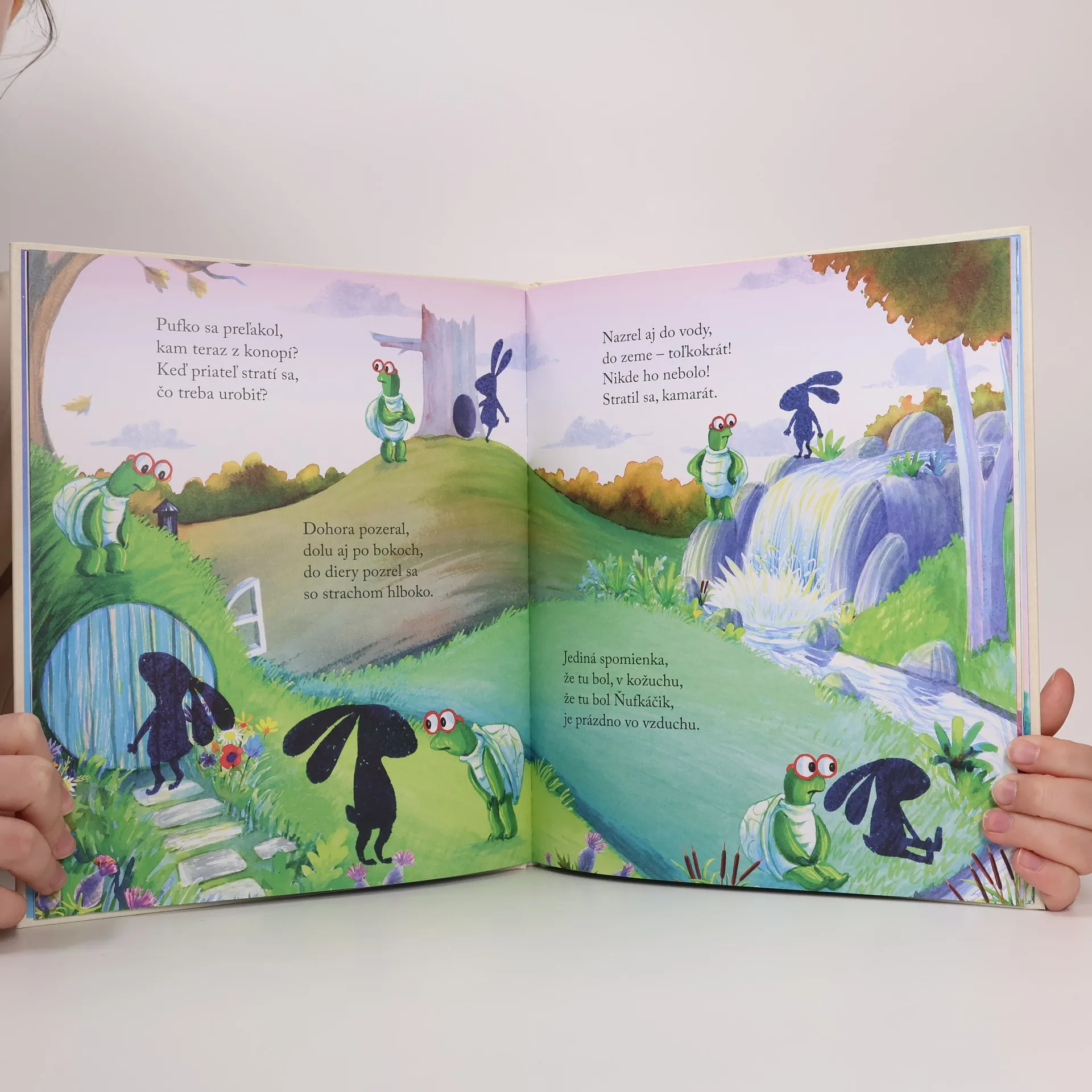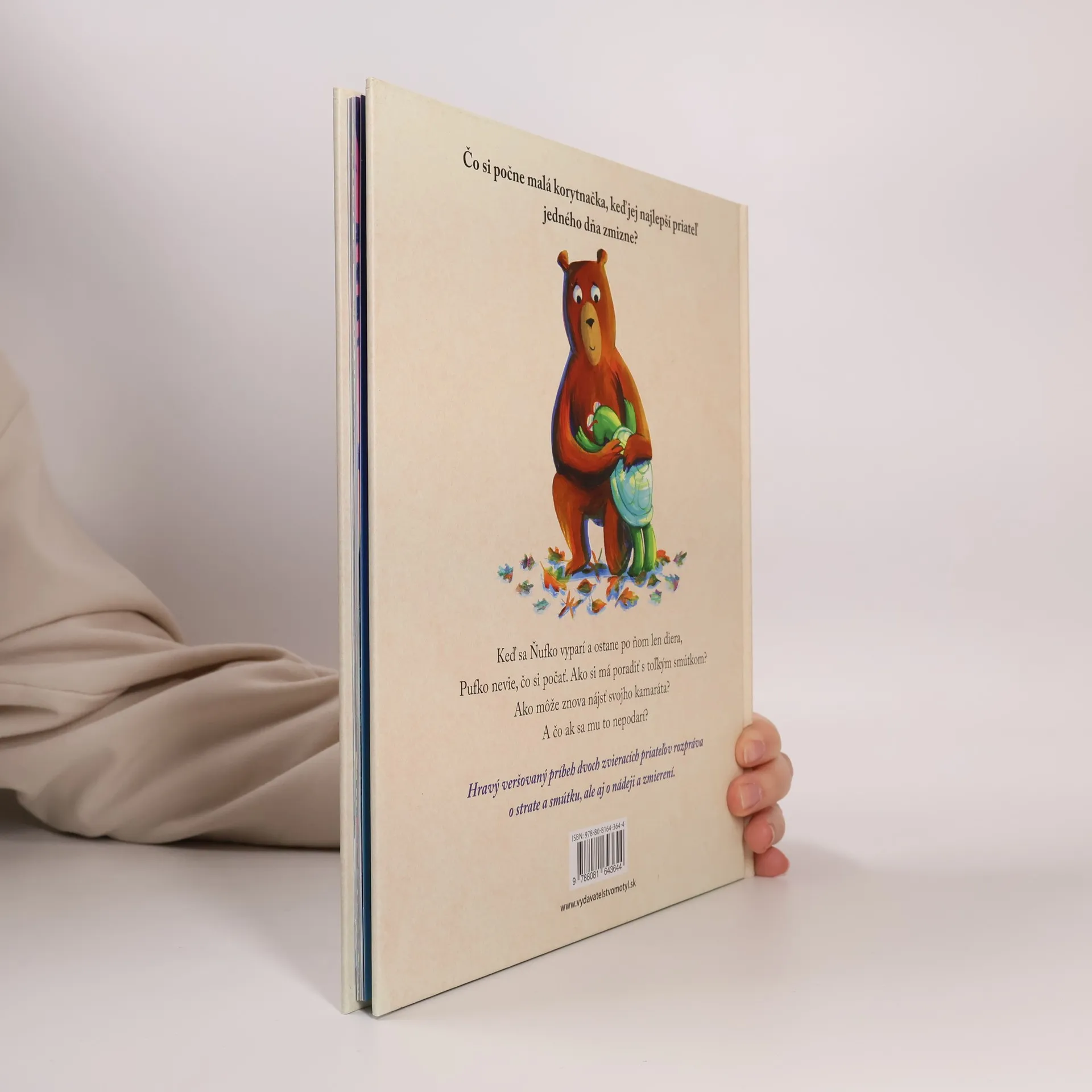 Čo si počne malá korytnačka, keď jej najlepší priateľ jedného dňa zmizne? Keď sa Ňufko vyparí a ostane po ňom len diera, Pufko nevie, čo si počať. Ako si má poradiť s toľkým smútkom? Ako môže znova nájsť svojho kamaráta? A čo ak sa mu to nepodarí? Hravý veršovaný príbeh dvoch zvieracích priateľov rozpráva o strate a smútku,ale aj o nádeji a zmierení. Táto obrázková knižka pomôže rodičom malých detí pracovať s detským smútkom zo straty blízkej osoby a prostredníctvom názorných obrázkov a vhodného slovníka im poskytne nástroje na jeho zvládnutie. Za citlivé spracovanie náročnej témy a svoju užitočnosť získala prestížne ocenenia KPMG Childrens Books Ireland Award 2024, UK Literacy Association Award 2024, nominovaná bola aj na Oscar´s Book Prize 2024.