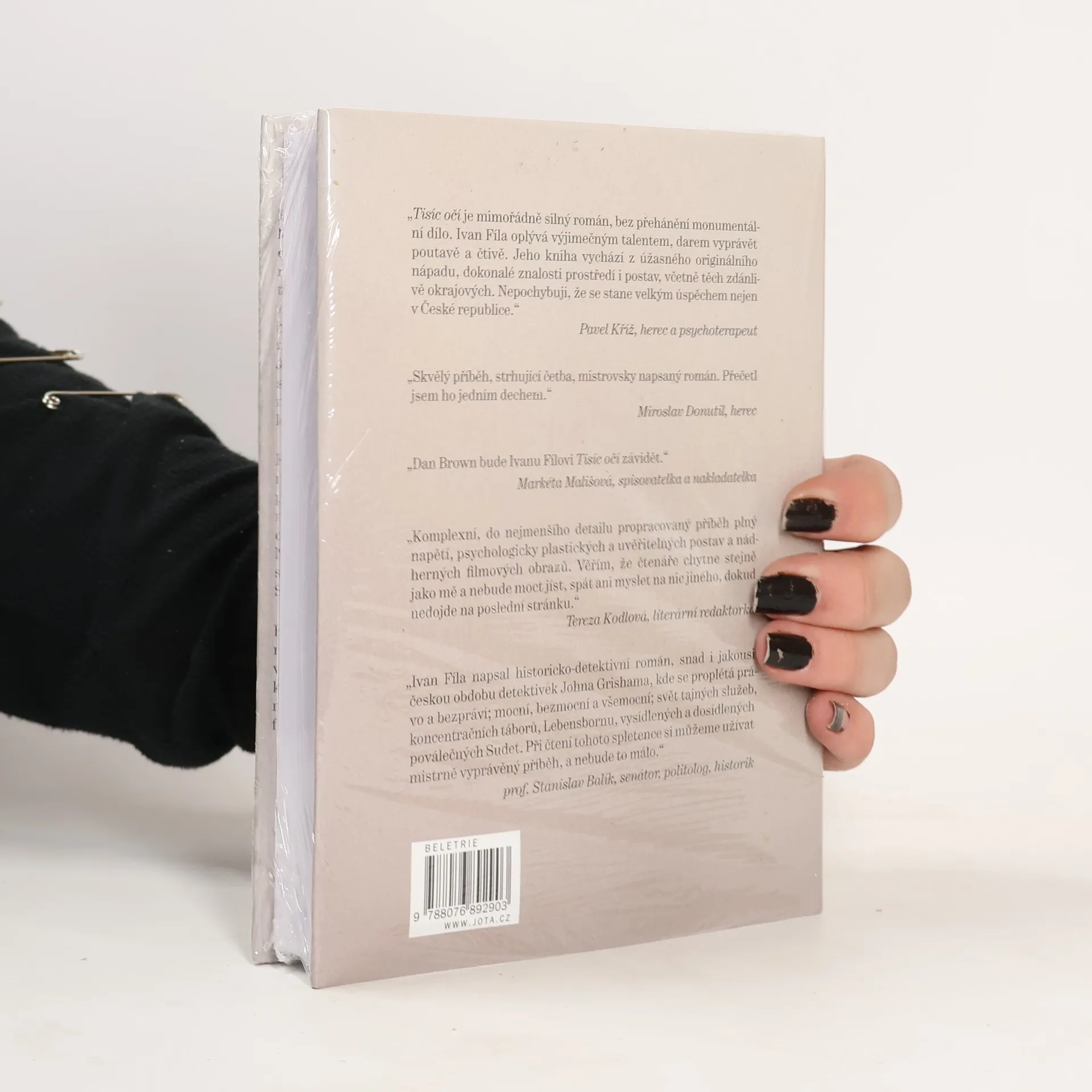Román Ivana Fíly Tisíc očí, inspirovaný skutečnými událostmi, je příběh téměř detektivní, napínavá rodinná sága z období od druhé světové války až po dnešek. Hlavní hrdinka, oběť zrůdného nacistického programu Lebensborn, hledá čtyřicet let svou biologickou matku a také sebe sama. S pomocí bývalého soudce se dostane na stopu válečného zločince, pozdějšího agenta STB, který si pod falešnou identitou užívá zdánlivě spokojené stáří v Jeseníkách. Neobvykle čilý a vitální muž zprvu netuší, proč za ním žena přišla, a co od něj chce. Až když ho osloví přezdívkou, na kterou slyšel v koncentračním táboře Mauthausen, kde rozhodoval o životě a smrti tisíce týraných obětí, pochopí, že minulost dohnala i jeho. Jak ale potrestat osmadevadesátiletého muže, který už nežije pro radost, ale za trest? A také jak potvrdit nebo vyvrátit teorii, že v každém z nás je potenciální vrah? Fílovo existenciální drama s prvky mystického thrilleru z temného moravskoslezského severu, Berlína a Porúří se svým originálním vypravěčským stylem vymyká jakékoli jednoznačnosti a žánrovému klišé.