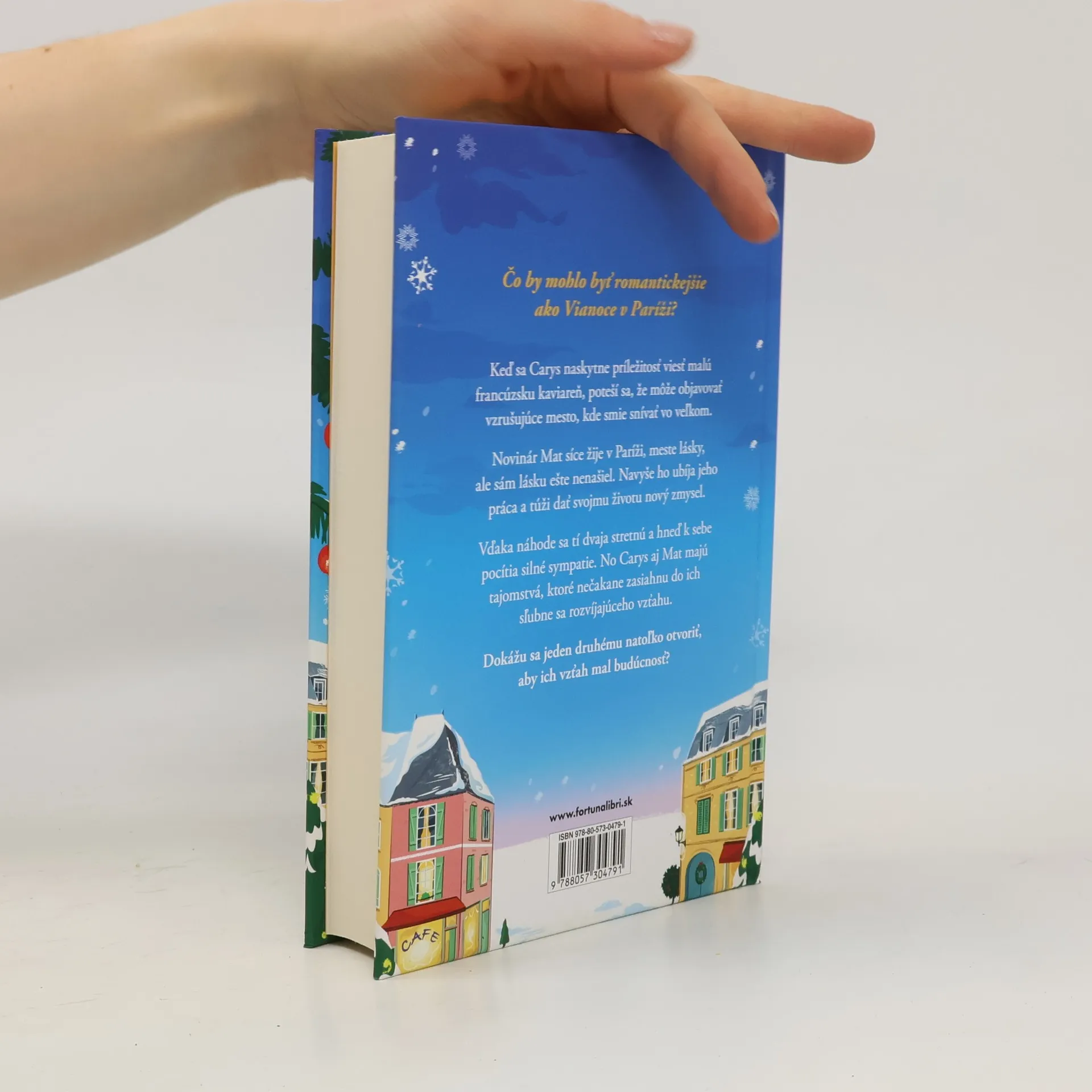 Čo by mohlo byť romantickejšie ako Vianoce v Paríži? Nájdu lásku v zasneženom meste? *** Keď sa Carys naskytne príležitosť viesť malú francúzsku kaviareň, poteší sa, že môže objavovať vzrušujúce mesto, kde smie snívať vo veľkom. Novinár Mat síce žije v Paríži, meste lásky, ale sám lásku ešte nenašiel. Navyše ho ubíja jehopráca a túži dať svojmu životu nový zmysel. Vďaka náhode sa tí dvaja stretnú a hneď k sebe pocítia silné sympatie. No Carys aj Mat majú tajomstvá, ktoré nečakane zasiahnu do ich sľubne sa rozvíjajúceho vzťahu. Dokážu sa jeden druhému natoľko otvoriť, aby ich vzťah mal budúcnosť?