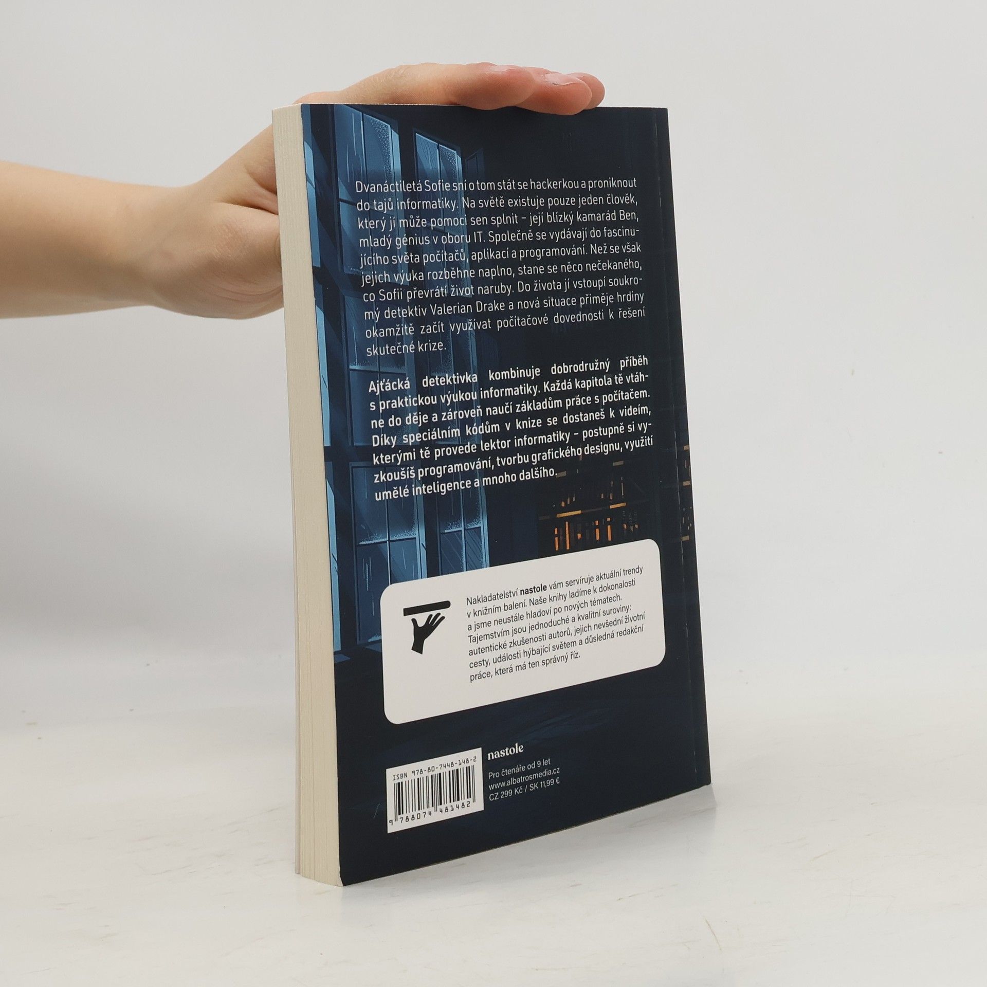 Dvanáctiletá Sofie sní o tom stát se hackerkou a proniknout do tajů informatiky. Na světě existuje pouze jeden člověk, který ji může pomoci sen splnit – její blízký kamarád Ben. Kniha kombinuje dobrodružný příběh s praktickou výukou informatiky. Každá kapitola tě vtáhne do děje a zároveň naučí základům práce s počítačem. Díky speciálním kódům se dostaneš k videím, kterými tě provede lektor informatiky, a postupně si vyzkoušíš programování, tvorbu grafického designu a mnoho dalšího.