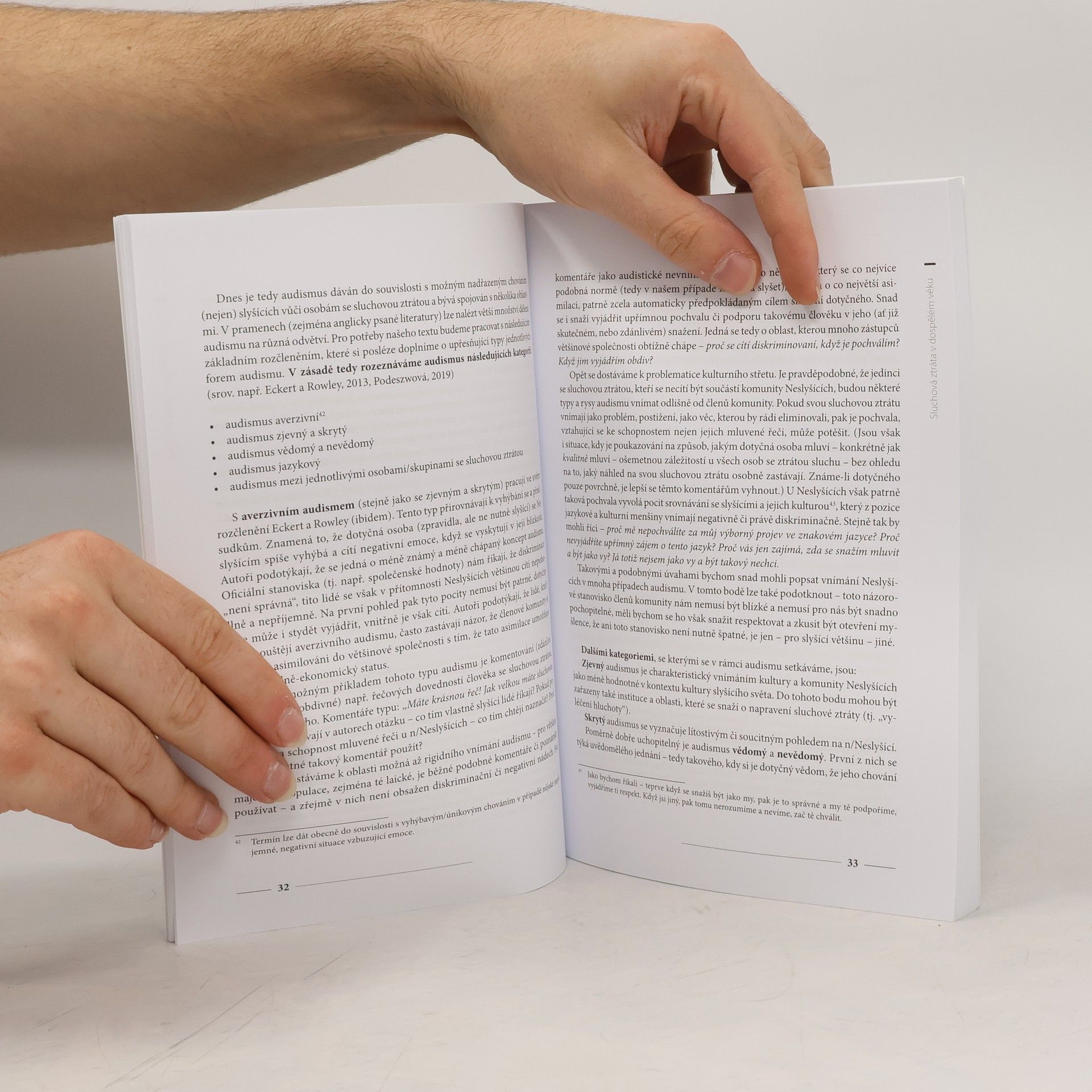 Publikace čtenáře provede aspekty zajímavých oblastí propojených s tematikou sluchového postižení či sluchové ztráty a nabídne vysvětlení spletité problematiky různých typů sluchového postižení. Pomůže nahlédnout do života osob s tímto postižením a nastínit témata týkající se jejich existence ve slyšícím světě.
