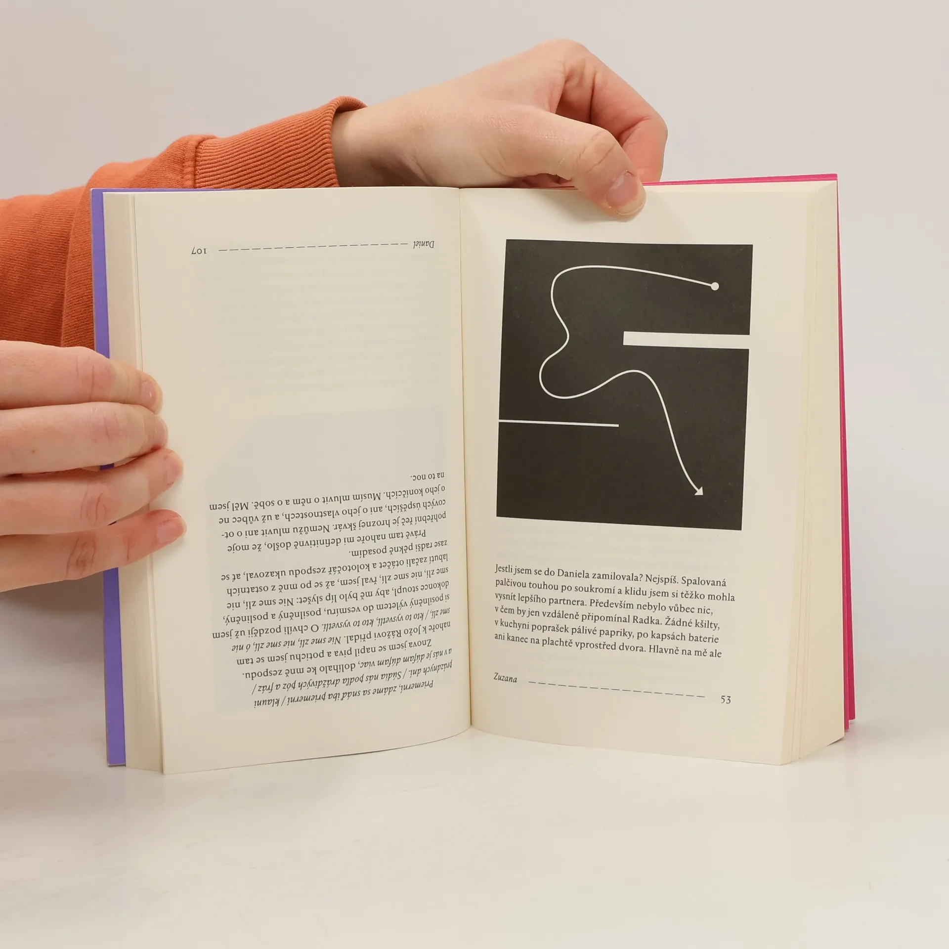 Experimentální román ze současnosti. Daniel vlastní byt v Táboře, ale pracuje v Praze a domů jezdí jen na víkendy. Zuzana odešla od přítele a nemá dost peněz, takže uvítá nájem aspoň na všední dny. Ty dva nespojuje nic než prostor, který každý po svém obývají, a ten prostor je zároveň rozděluje. Jak by vlastně dva lidé mohlimít něco společného? On se stará o umírajícího otce, péče o hrany života však zbude vždycky na ni. Jemu zalehlo srdce, ona má šelest na mozku. Dva příběhy ze současnosti, které se dotýkají a zároveň míjejí, dvě samomluvy, které se až díky čtenáři mohou stát rozhovorem. Jana Šrámková a Jan Němec našli nezvyklý způsob, jak napsat knihu dohromady a zároveň každý zvlášť. Výsledkem je originální román, který lze číst z jedné nebo druhé strany, anebo třeba na přeskáčku. Není to však literární hra, ale osudová volba: na směru čtení nezávisí nic menšího než Danielova a Zuzanina budoucnost. Není však život nakonec palindrom? V elipse spí lev, říká Daniel. Uchem v mechu, odpovídá Zuzana.