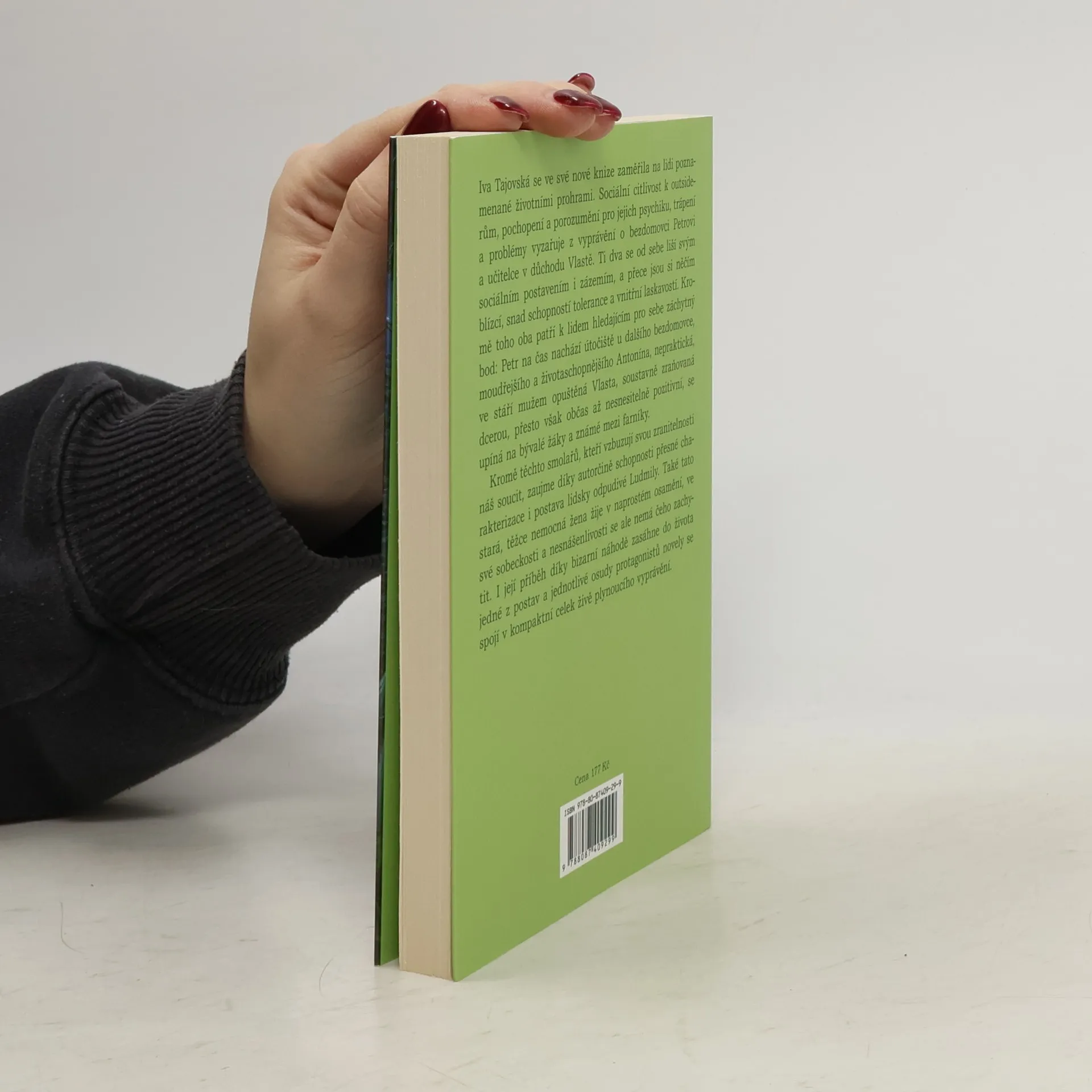 Iva Tajovská se ve své nové knize zaměřila na lidi poznamenané životními prohrami. Sociální citlivost k outsiderům, pochopení a porozumění pro jejich psychiku, trápení a problémy vyzařuje z vyprávění o bezdomovci Petrovi a učitelce v důchodu Vlastě. Ti dva se od sebe liší svým sociálním postavením i zázemím, a přece jsou si něčím blízcí, snad schopností tolerance a vnitřní laskavostí. Kromě toho oba patří k lidem hledajícím pro sebe záchytný bod: Petr na čas nachází útočiště u dalšího bezdomovce, moudřejšího a životaschopnějšího Antonína, nepraktická, ve stáří mužem opuštěná Vlasta, soustavně zraňovaná dcerou, přesto však občas až nesnesitelně pozitivní, se upíná na bývalé žáky a známé mezi farníky. Kromě těchto smolařů, kteří vzbuzují svou zranitelností náš soucit, zaujme díky autorčině schopnosti přesné charakterizace i postava lidsky odpudivé Ludmily. Také tato stará, těžce nemocná žena žije v naprostém osamění, ve své sobeckosti a nesnášenlivosti se ale nemá čeho zachytit. I její příběh díky bizarní náhodě zasáhne do života jedné z postav a jednotlivé osudy protagonistů novely se spojí v kompaktní celek živě plynoucího vyprávění.