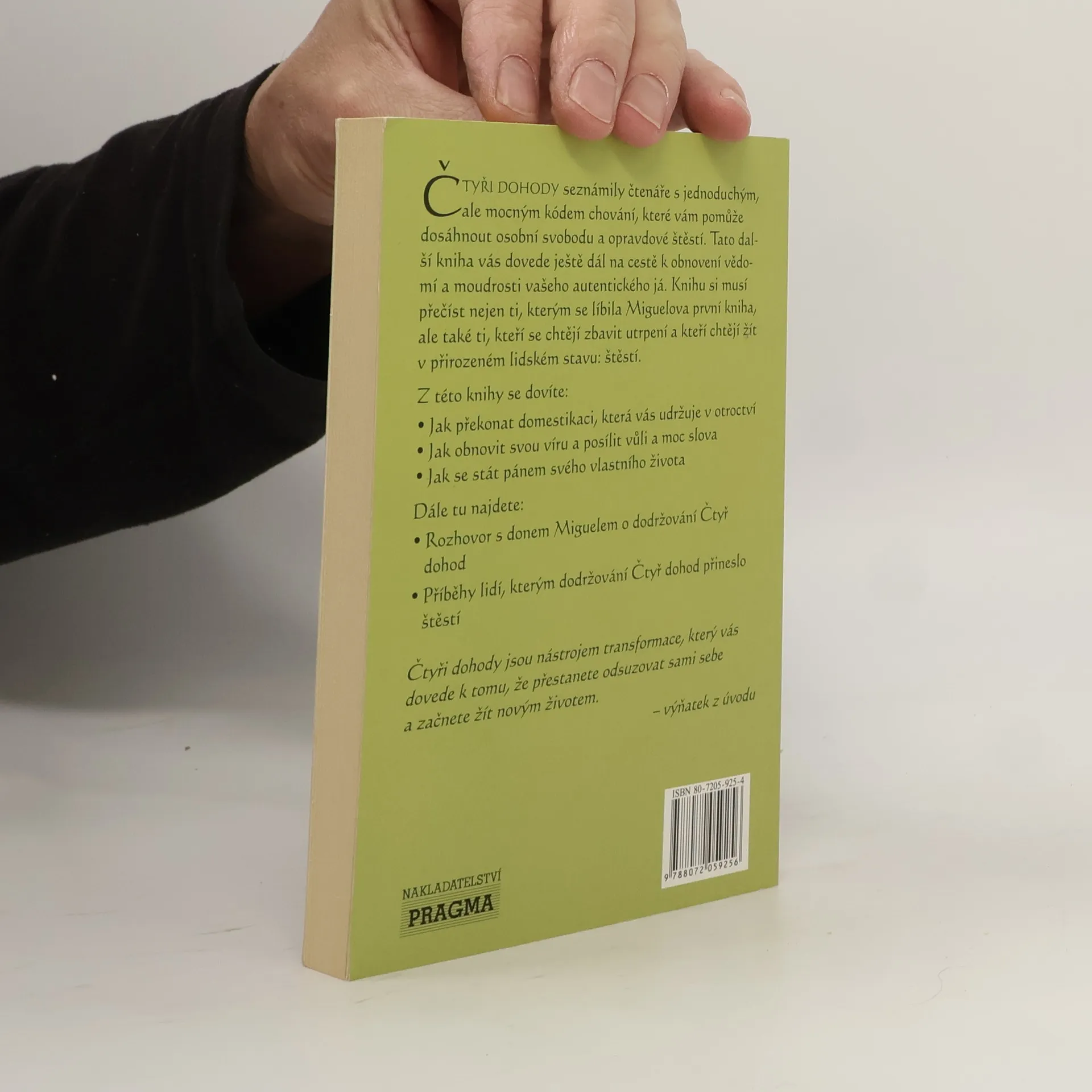 Čtyři dohody seznámily čtenáře s jednoduchým, ale mocným kódem chování, které vám pomůže dosáhnout osobní svobodu a opravdové štěstí. Tato další kniha vás dovede ještě dál na cestě k obnovení vědomí a moudrosti vašeho autentického já. Knihu si musí přečíst nejen ti, kterým se líbila Miguelova první kniha, ale také ti, kteří se chtějí zbavit utrpení a kteří chtějí žít v přirozeném lidském stavu: štěstí.
