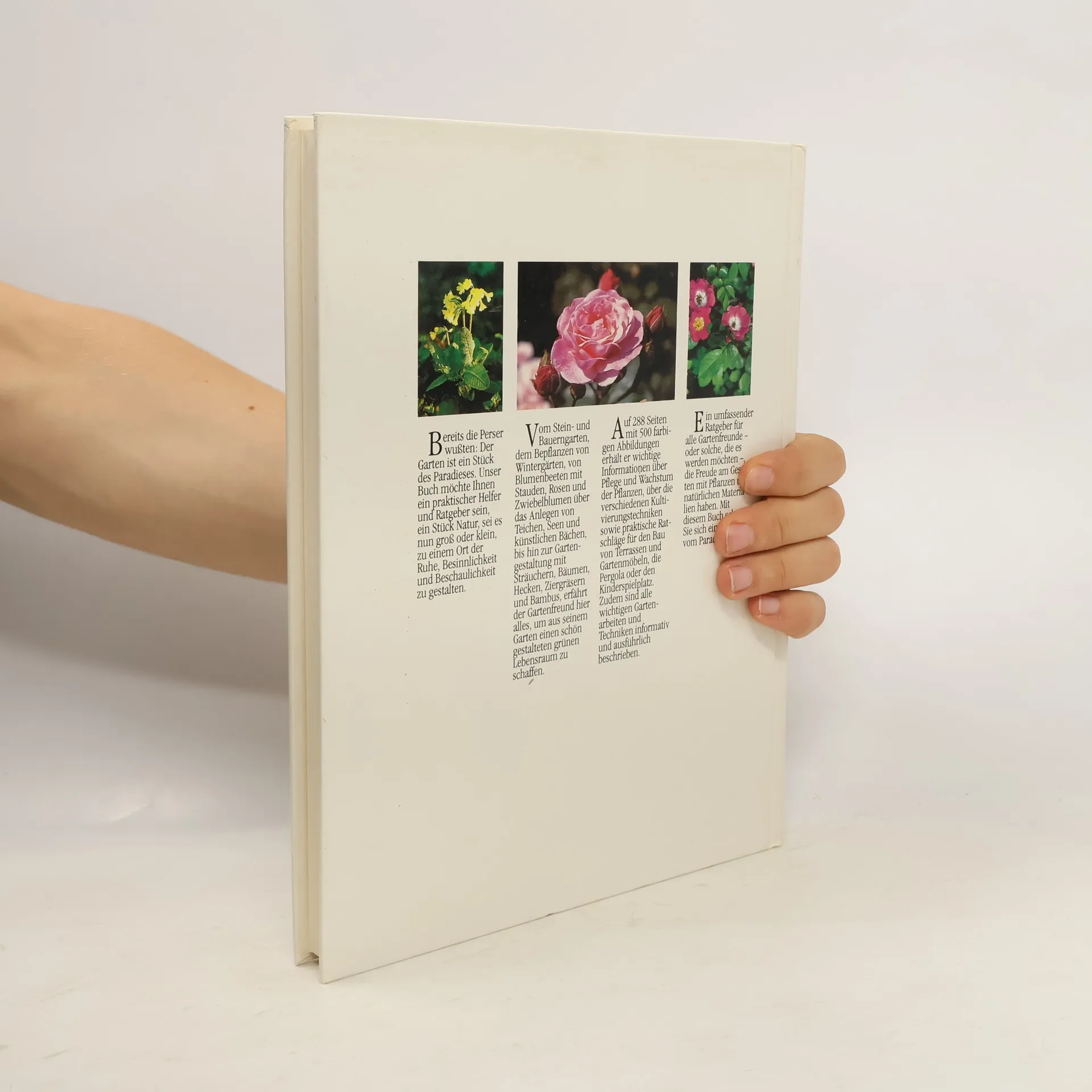 Eine mit vielen Farbfotos ausgestattete Sammlung von Möglichkeiten für die Anlage und Umgestaltung des Hobbygartens; mit Beschreibungen von Blumen, Stauden und Gehölzen.